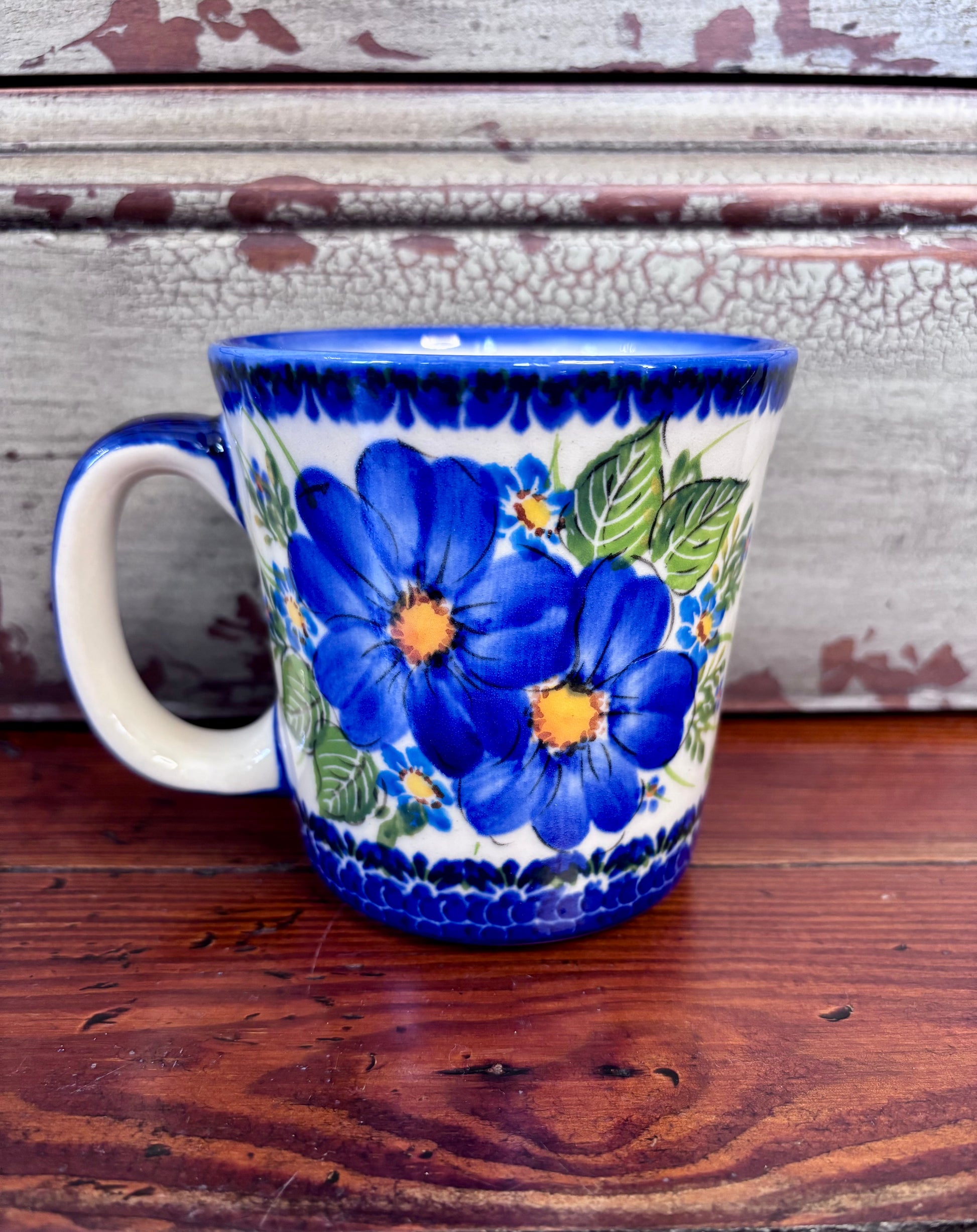 Sip your favorite hot beverage in this beautiful straight-sided mug with large loop handle.