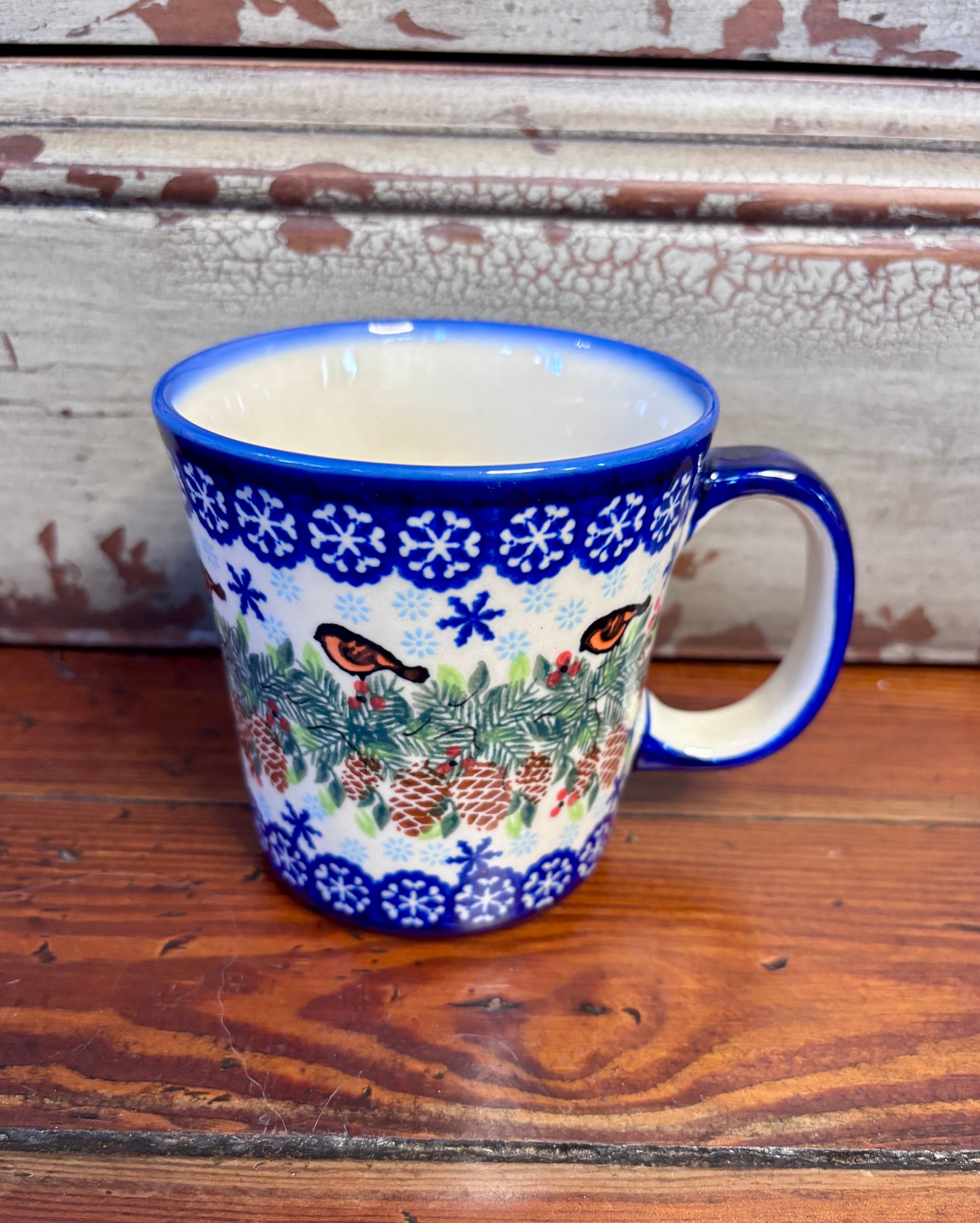Sip your favorite hot beverage in this beautiful straight-sided mug with large loop handle.