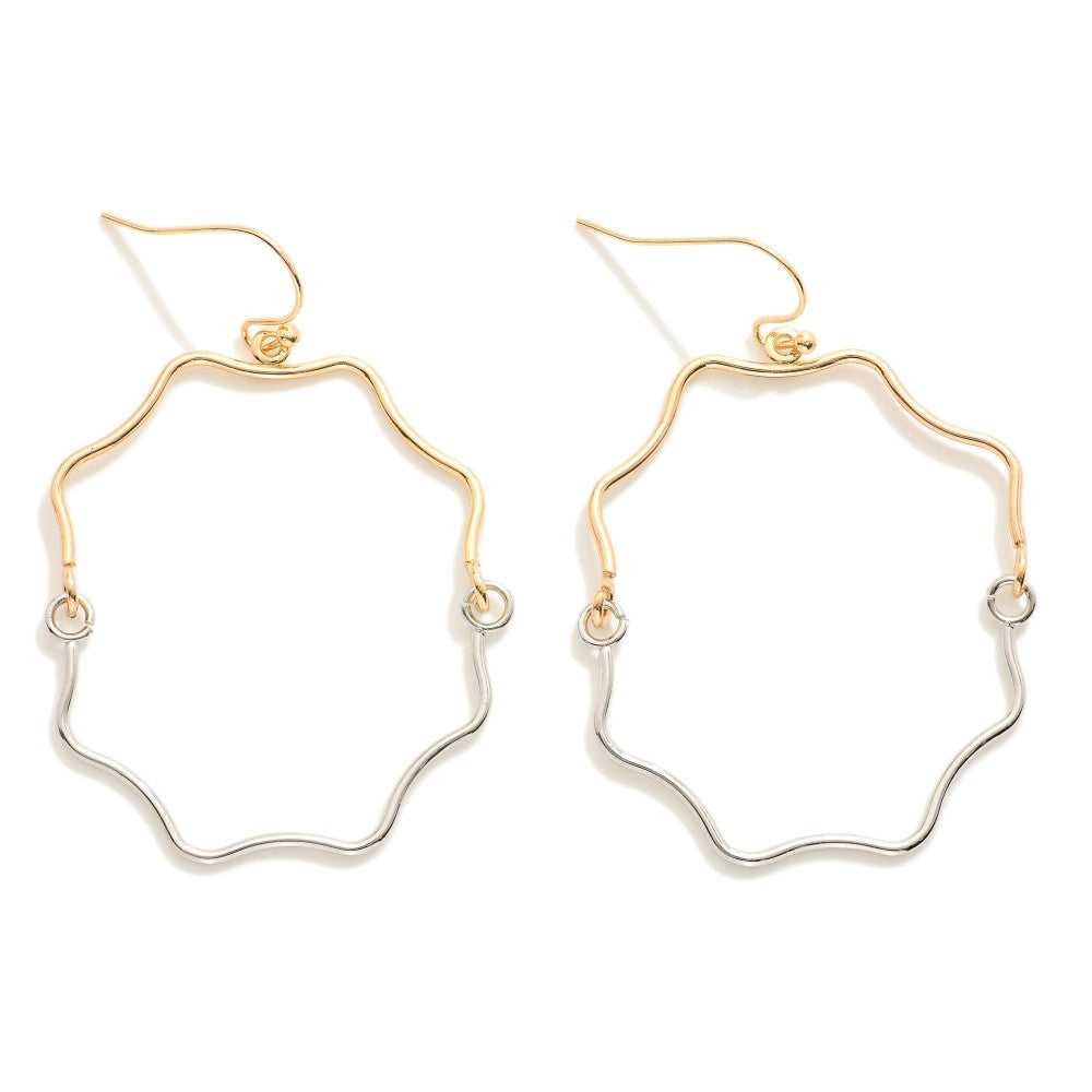 Metal Tone Crimped Linked Hoop Drop Earrings