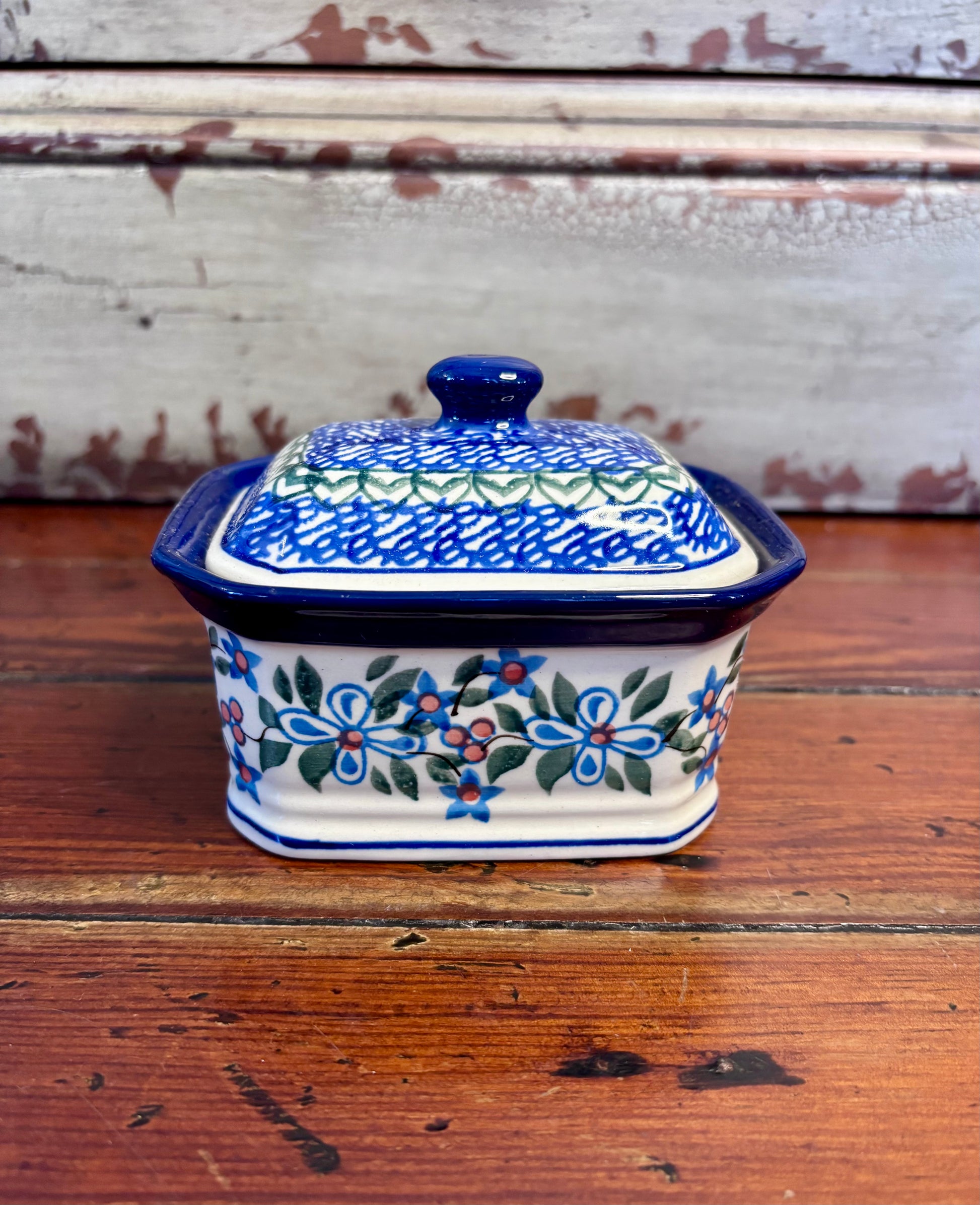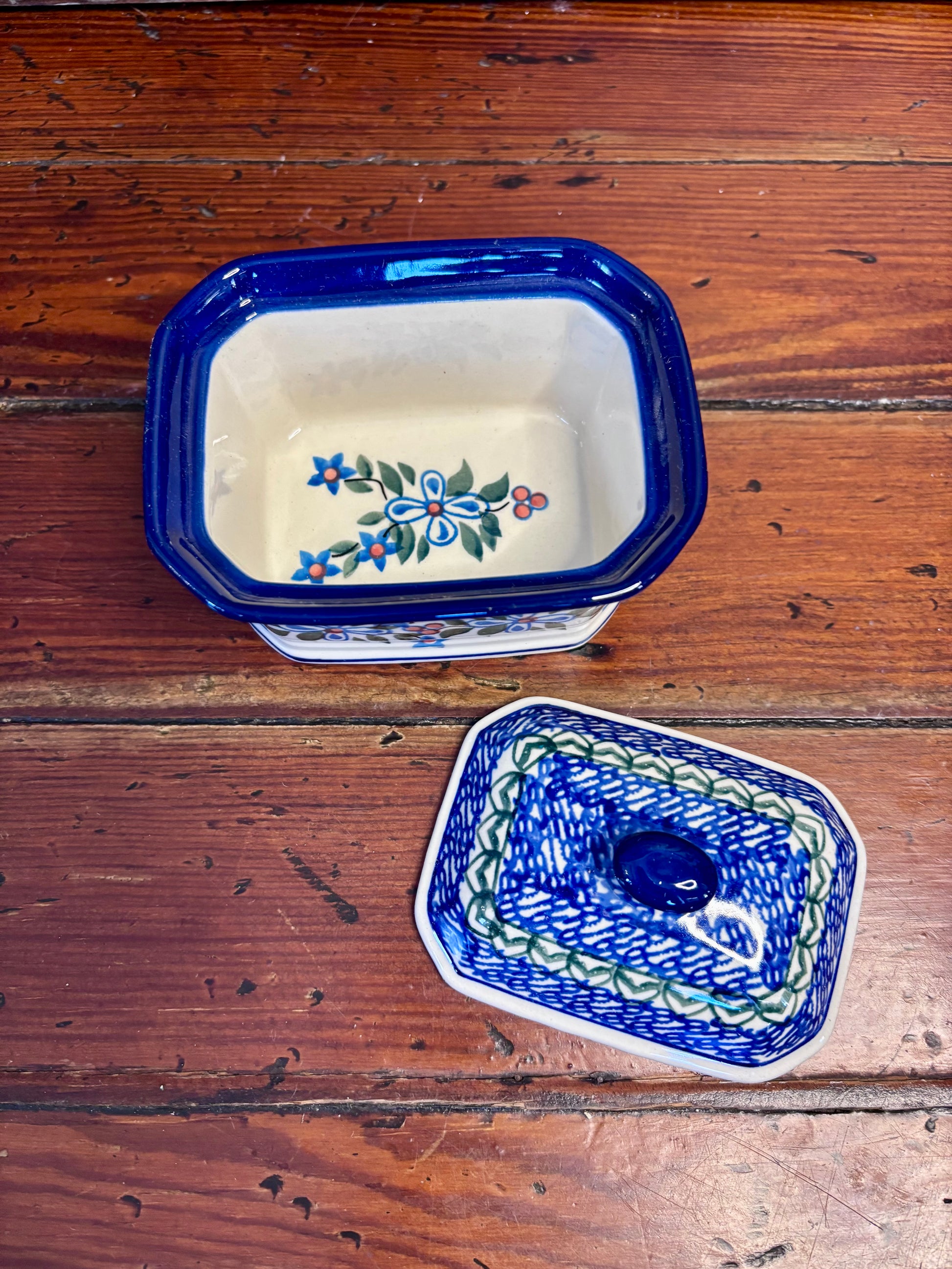 Called a salt or cake box but perfect for tea bags or sugar! 4.53 x 3.35 x 2.95