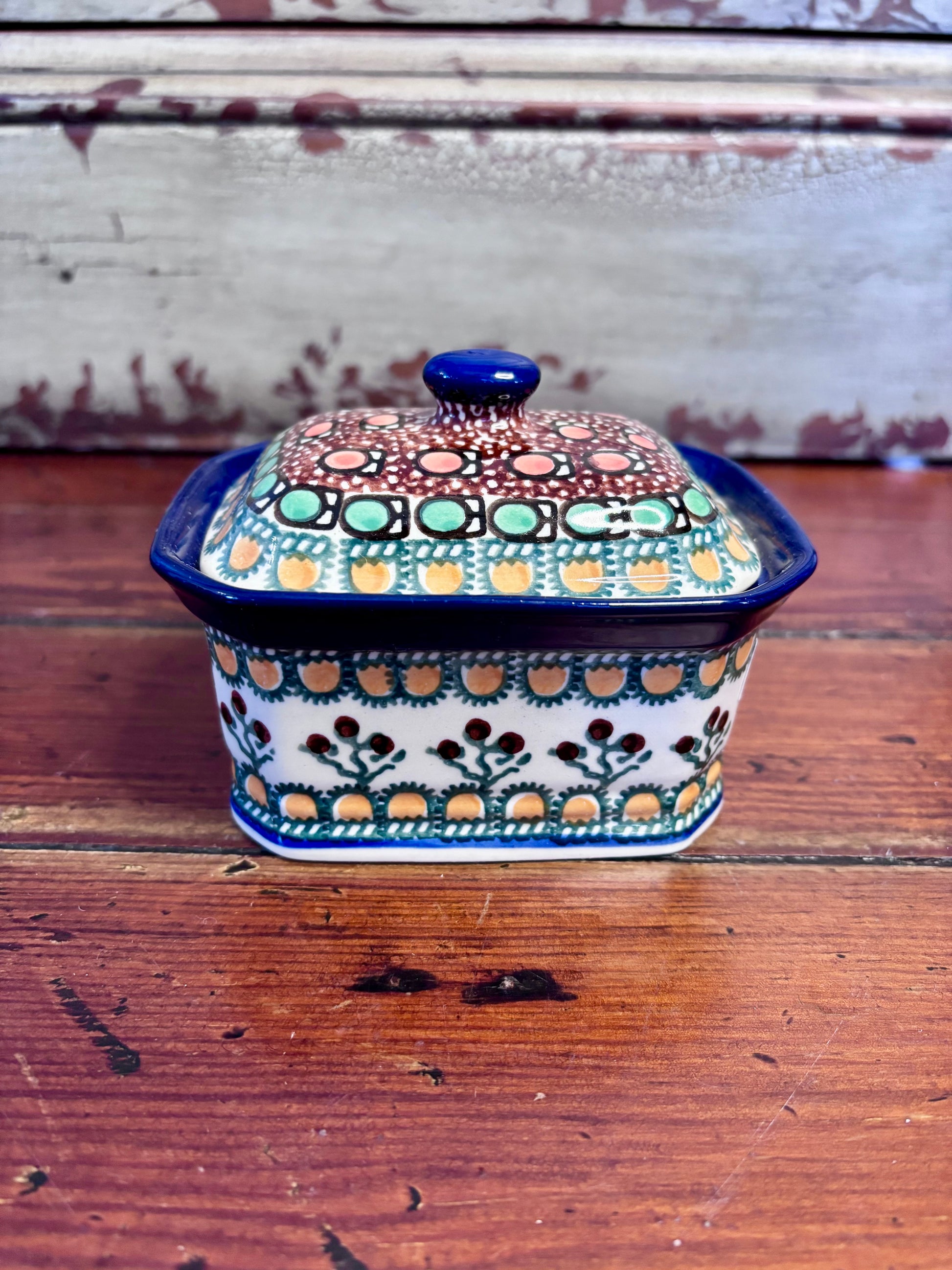 Called a salt or cake box but perfect for tea bags or sugar! 4.53 x 3.35 x 2.95