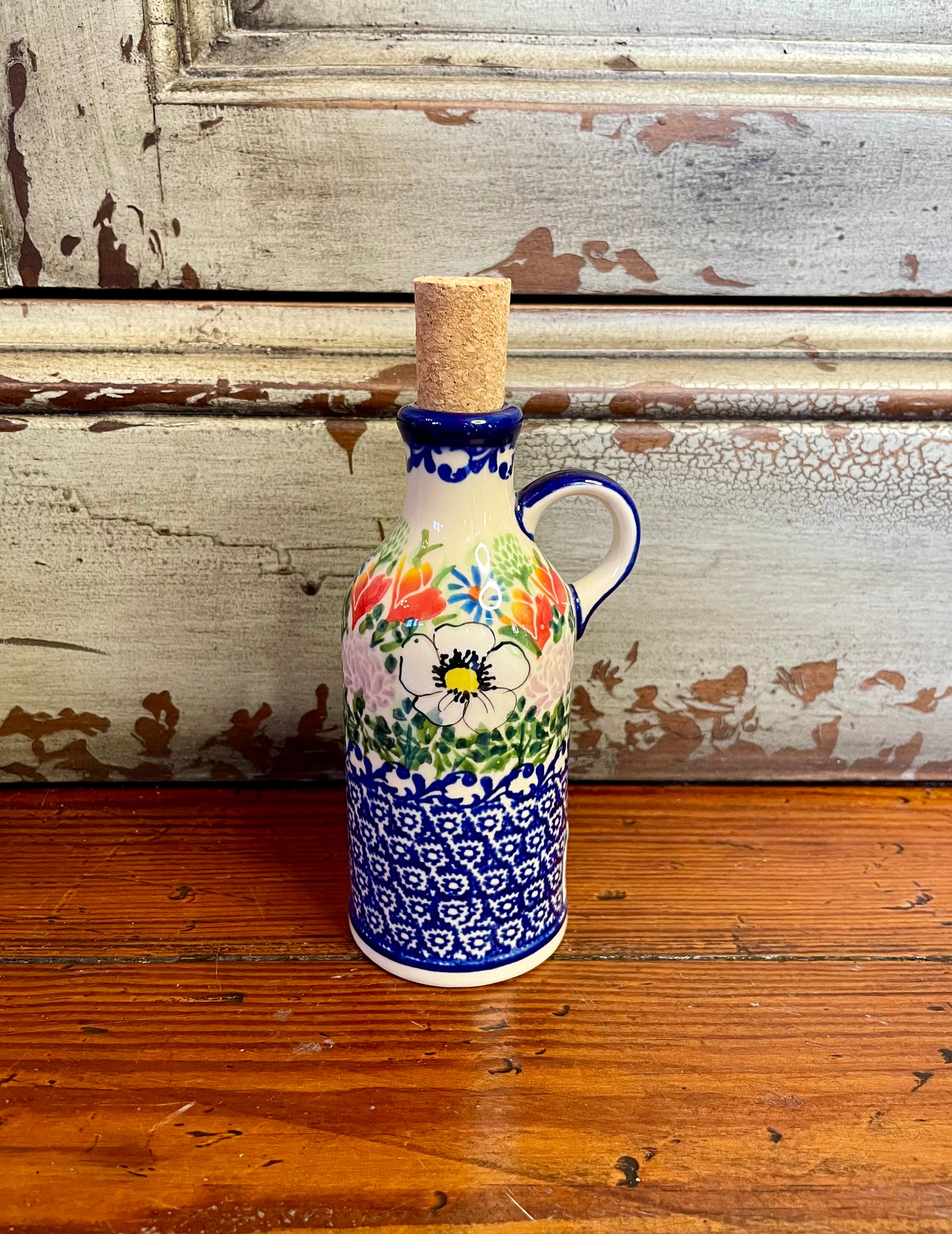 A beautiful way to store your oil or vinegar! This bottle measures 5” tall.