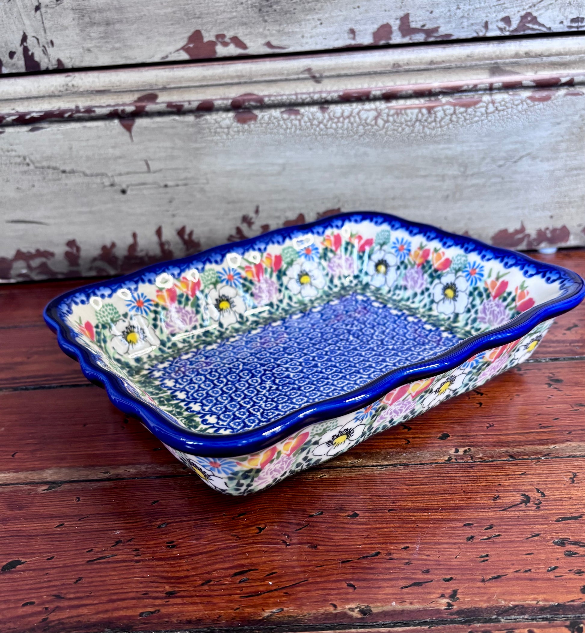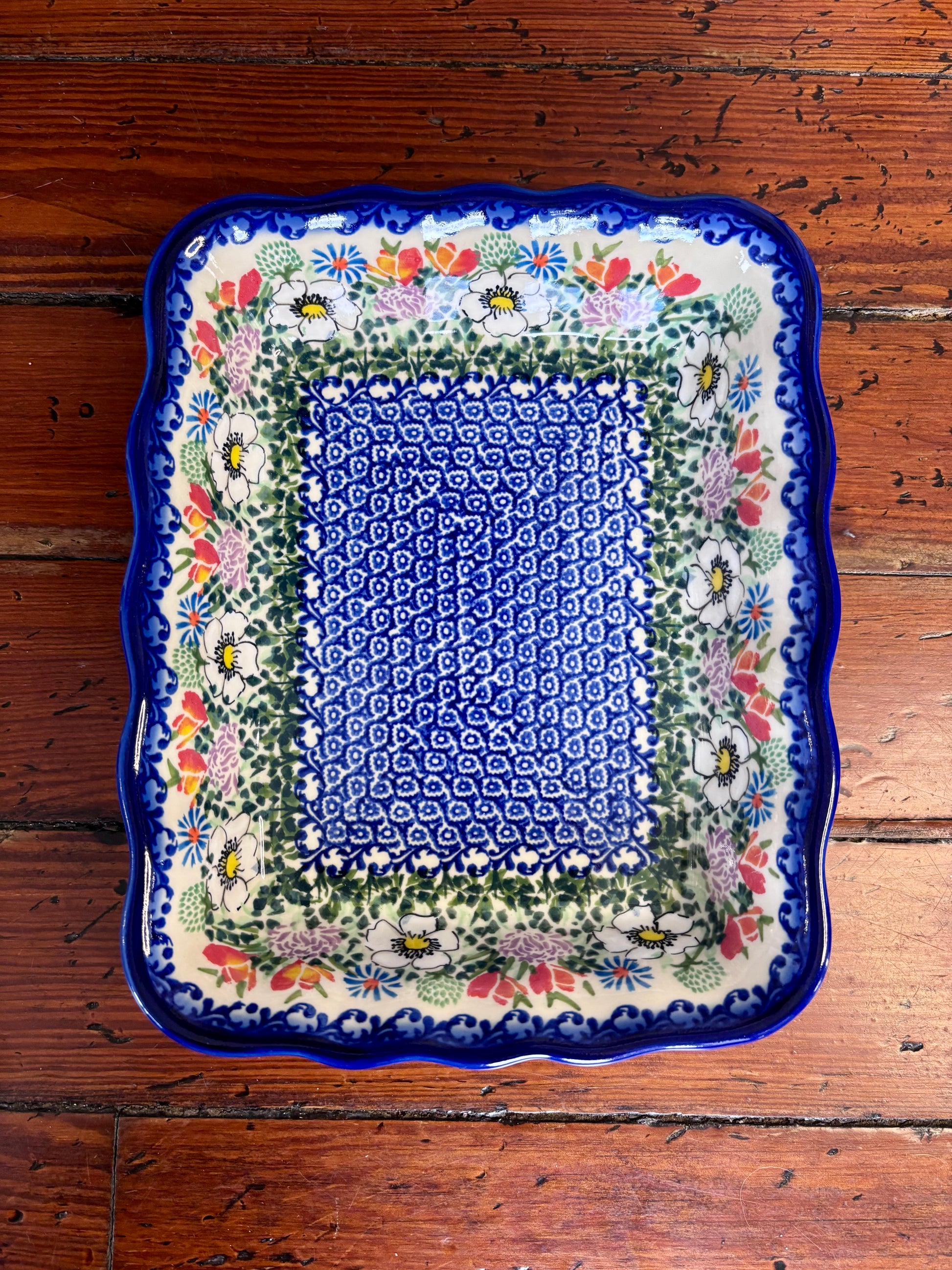 Gorgeous scalloped edge baker with handles. 9.5 x 7.75 x 2