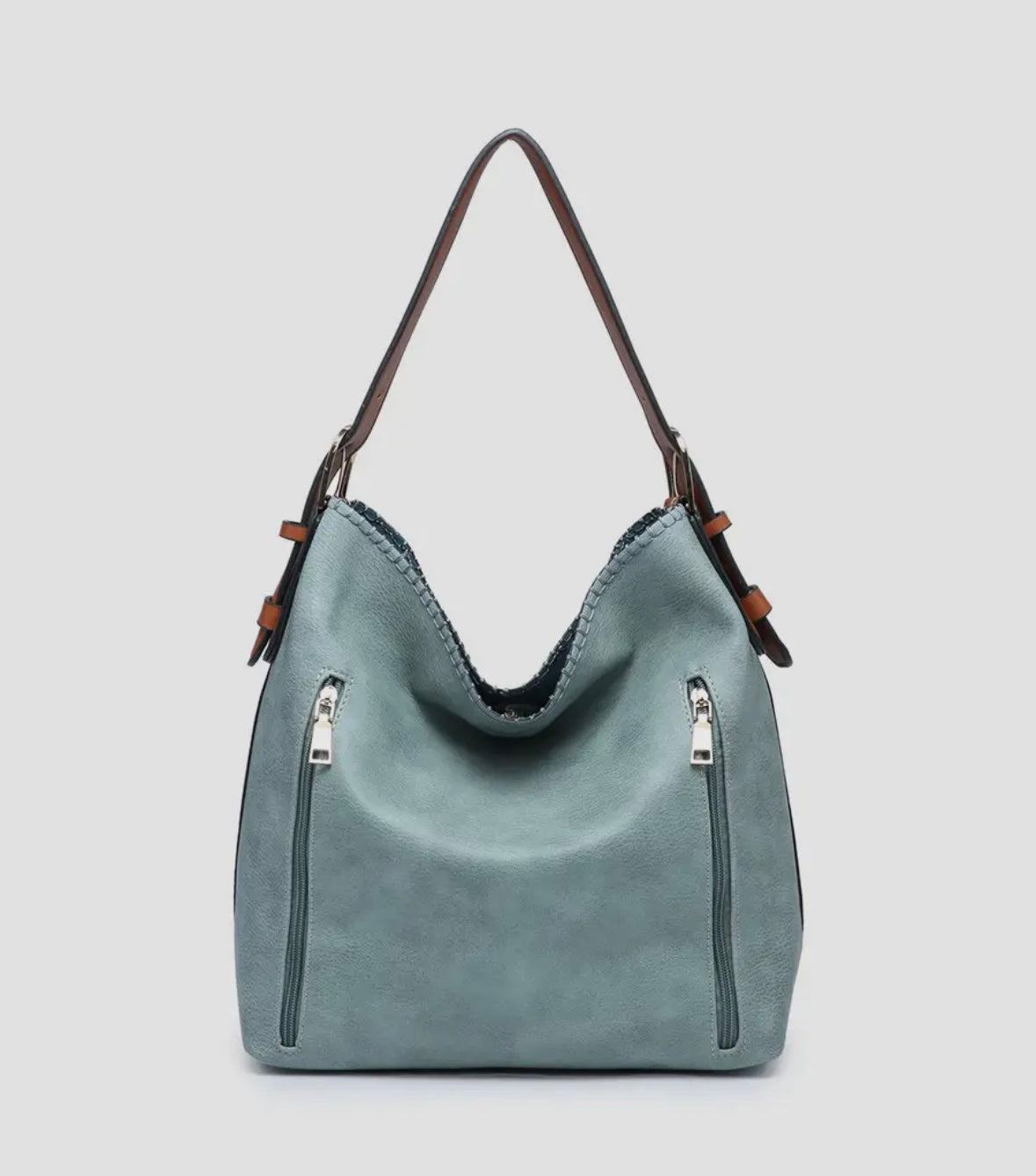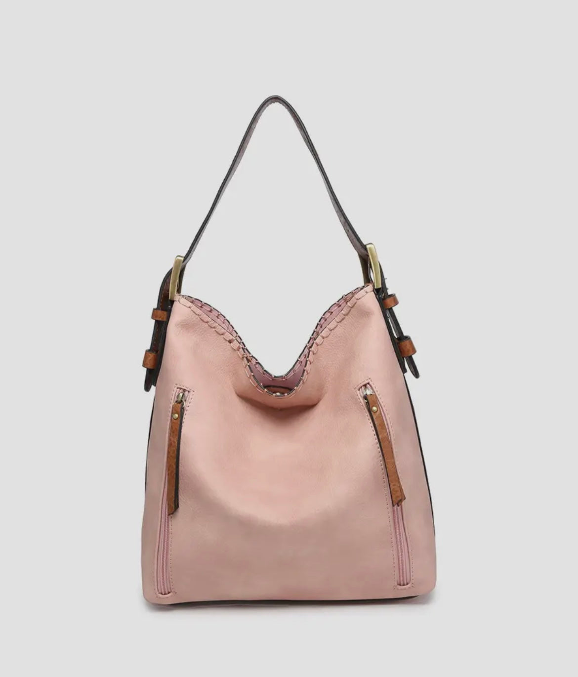 Adjustable buckle shoulder straps. Dual sided conceal pockets. Magnetic snap closure. Inner bag with inner slip and zip closure. Adjustable and removeable crossbody strap. Vegan