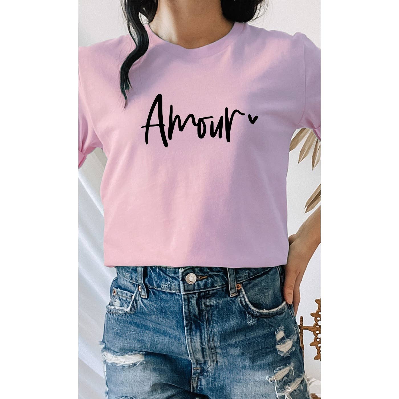 Introducing our "Amour Heart" Valentines Day Graphic Short Sleeve—a chic and romantic addition to your wardrobe that effortlessly captures the essence of love. Embrace the language of the heart with this beautifully designed short sleeve tee that speaks volumes in style and sentiment. The word "Amour" is French for love. The "Amour Heart" graphic takes center stage, merging timeless elegance with contemporary flair. The intricate heart design, adorned with delicate details, adds a touch of sophistication to your Valentine's Day ensemble. Crafted with passion and precision, this short sleeve tee is the perfect canvas for expressing your romantic side. Made from high-quality, breathable fabric, our short sleeve tee ensures comfort without compromising on style. The flattering fit and versatile silhouette make it an ideal choice for both casual outings and special occasions. Whether you're celebrating with a loved one or expressing self-love, the "Amour Heart" tee sets the perfect tone.