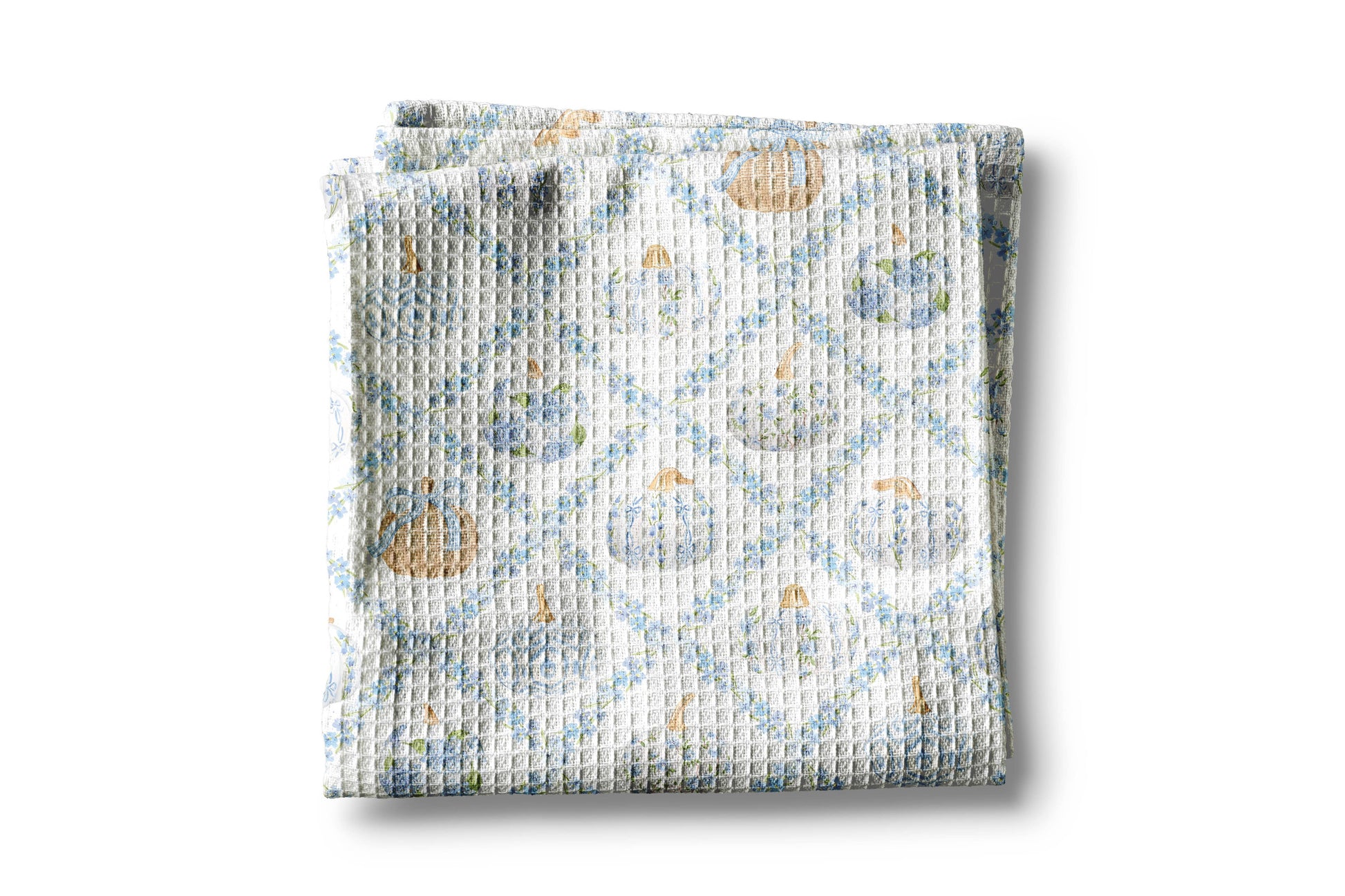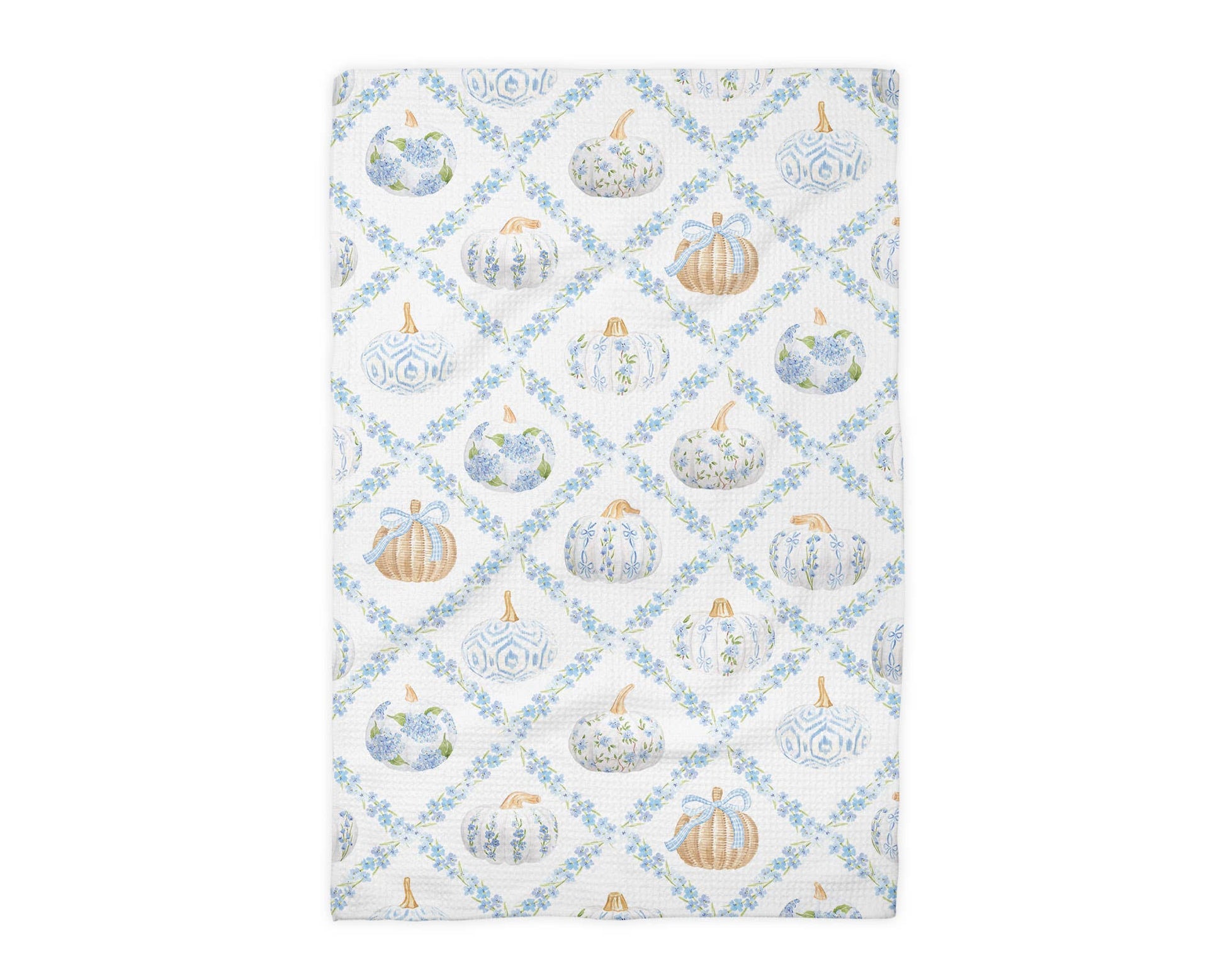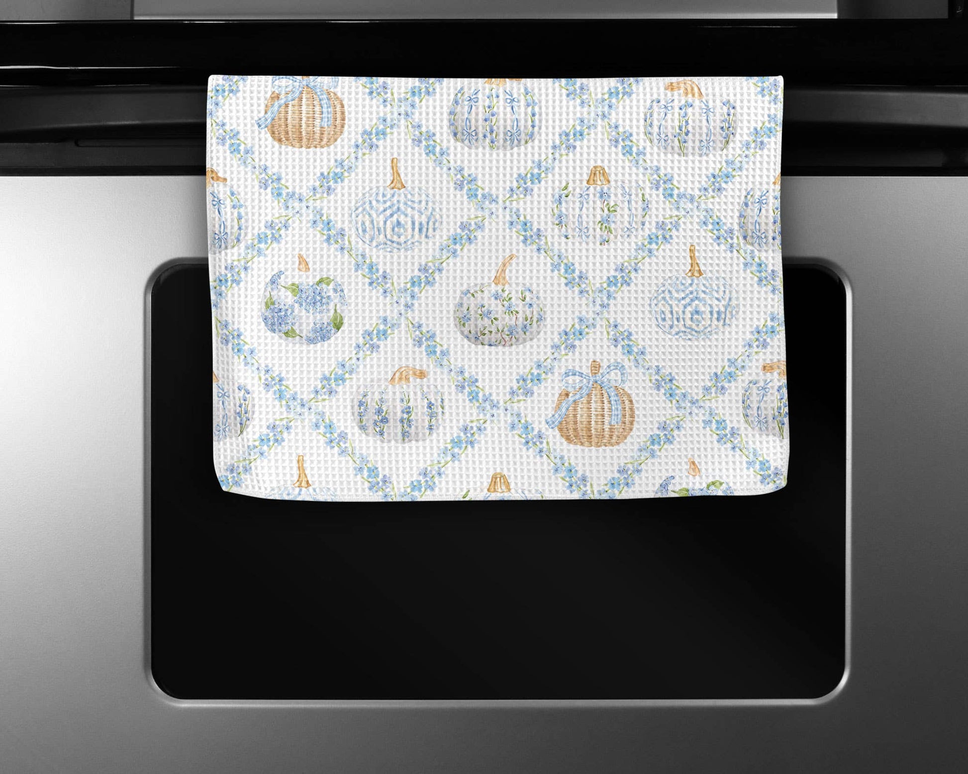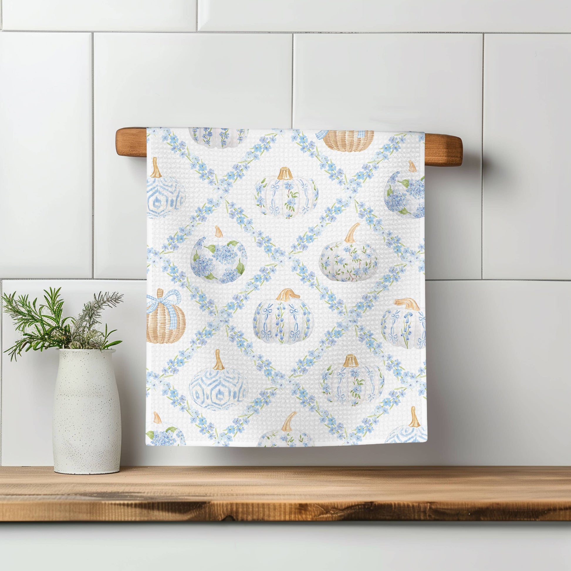 Blue Pumpkin Chinoiserie Fall Coastal Kitchen Towel Waffle