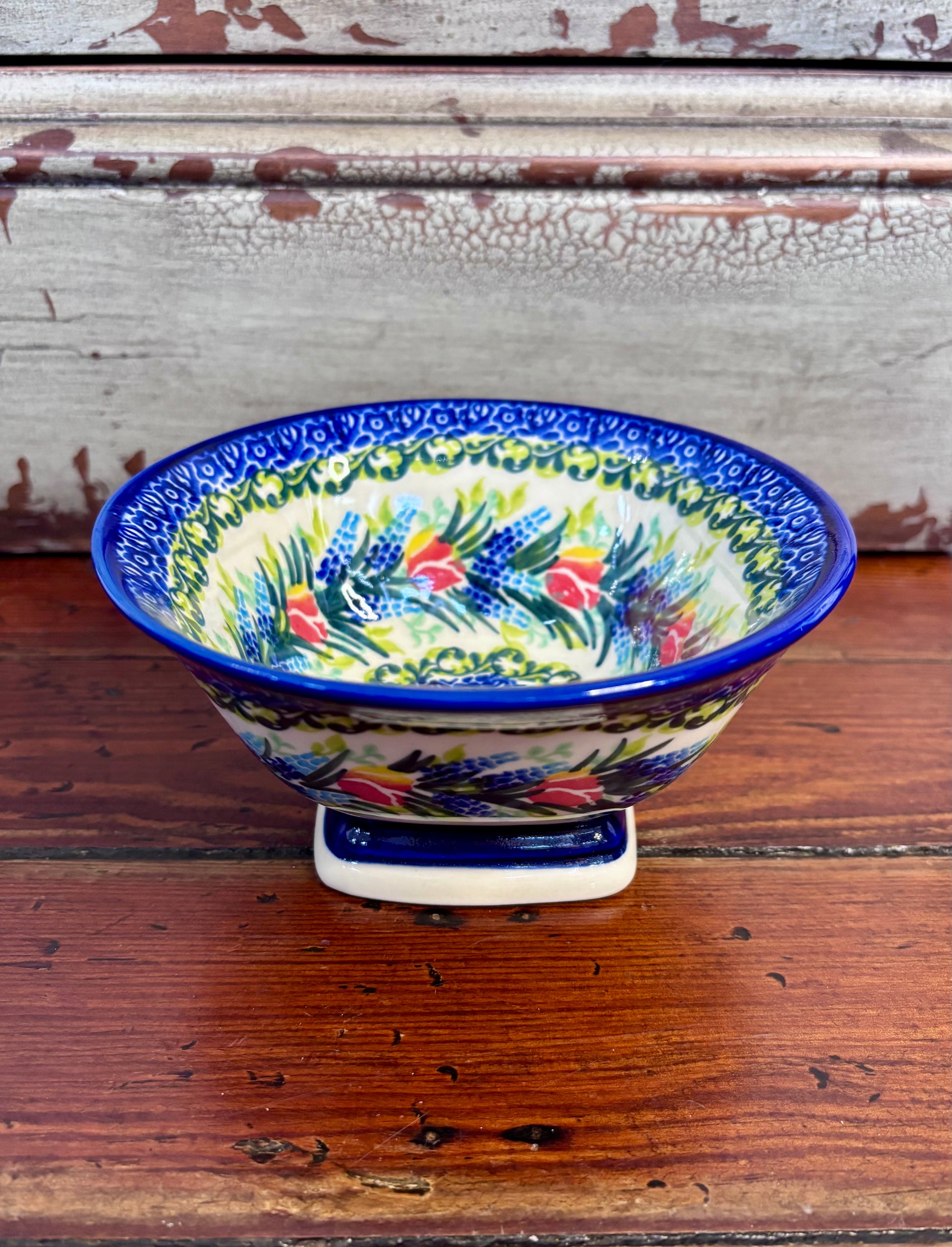 Kalich pedestal bowl. Measuring 6” in diameter and standing 3” tall.