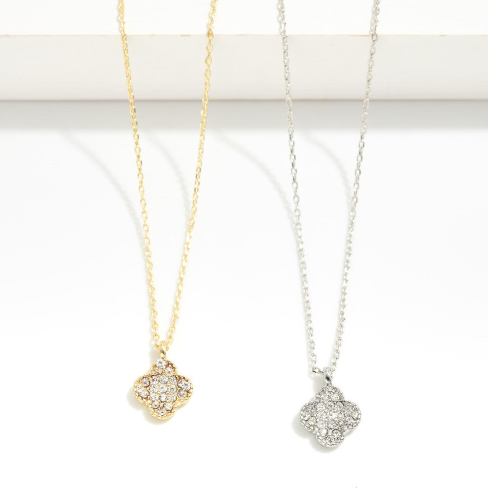 Dainty Chain Link Necklace Featuring Rhinestone Studded Clover Pendant