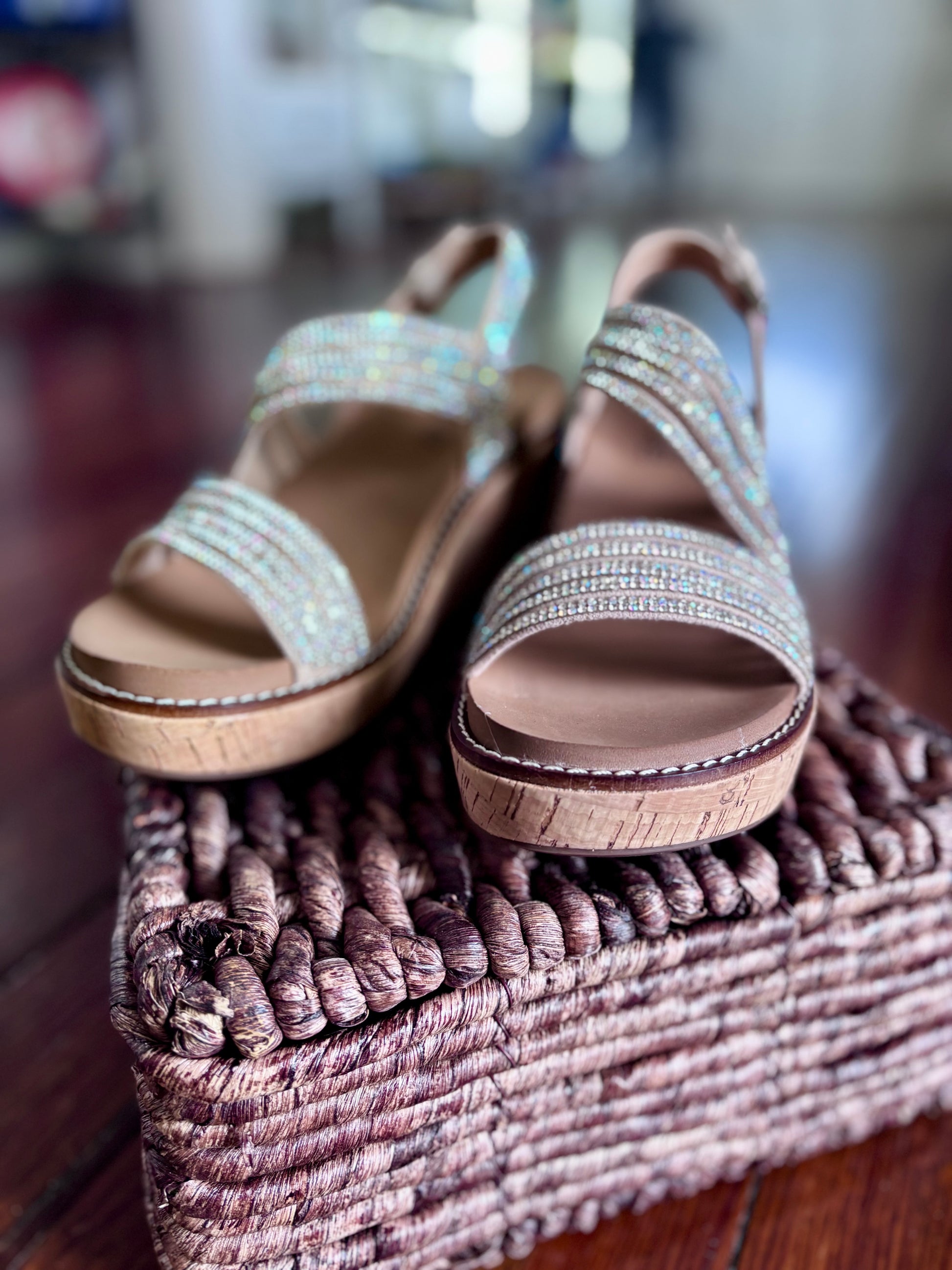 Now you can wear your favorite shoes to any occasion with the About Last Night Wedge! Strappy faux leather upper adorned with rhinestones on the 2.75” memory foam wedge we love. GORGEOUS!!!