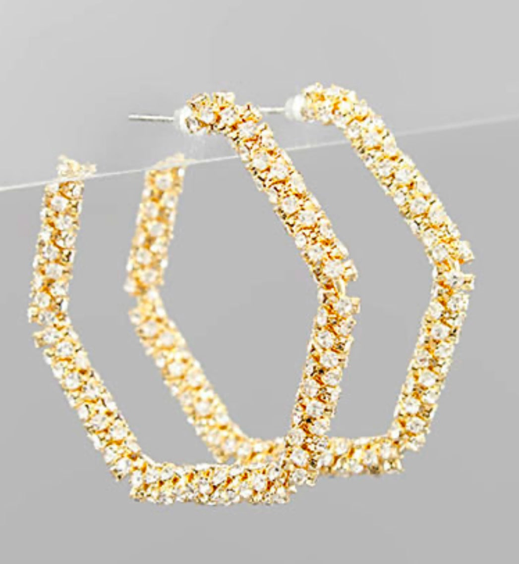 Crystal Pave Hexagon Hoops
