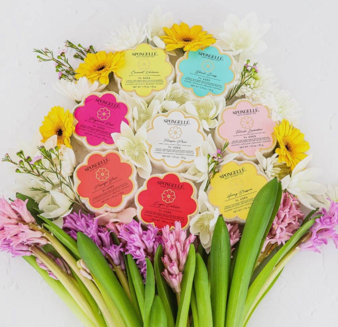 Everything you love about Spongelle® in a convenient travel-size Spongette meets Daisy Collection's signature flower design infused with more washes. Accepted on all airlines, leak-proof, easy to carry, and everything you need for soft and radiant skin. Enjoy our assortment of eight travel-friendly blends in Bulgarian Rose, Coconut Verbena, French Lavender, Freesia Pear, Papaya Yuzu, Honey Blossom, Beach Grass, and Sugar Dahlia to spruce up any vacation or trip to the gym. Good for 7+ washes per buffer.