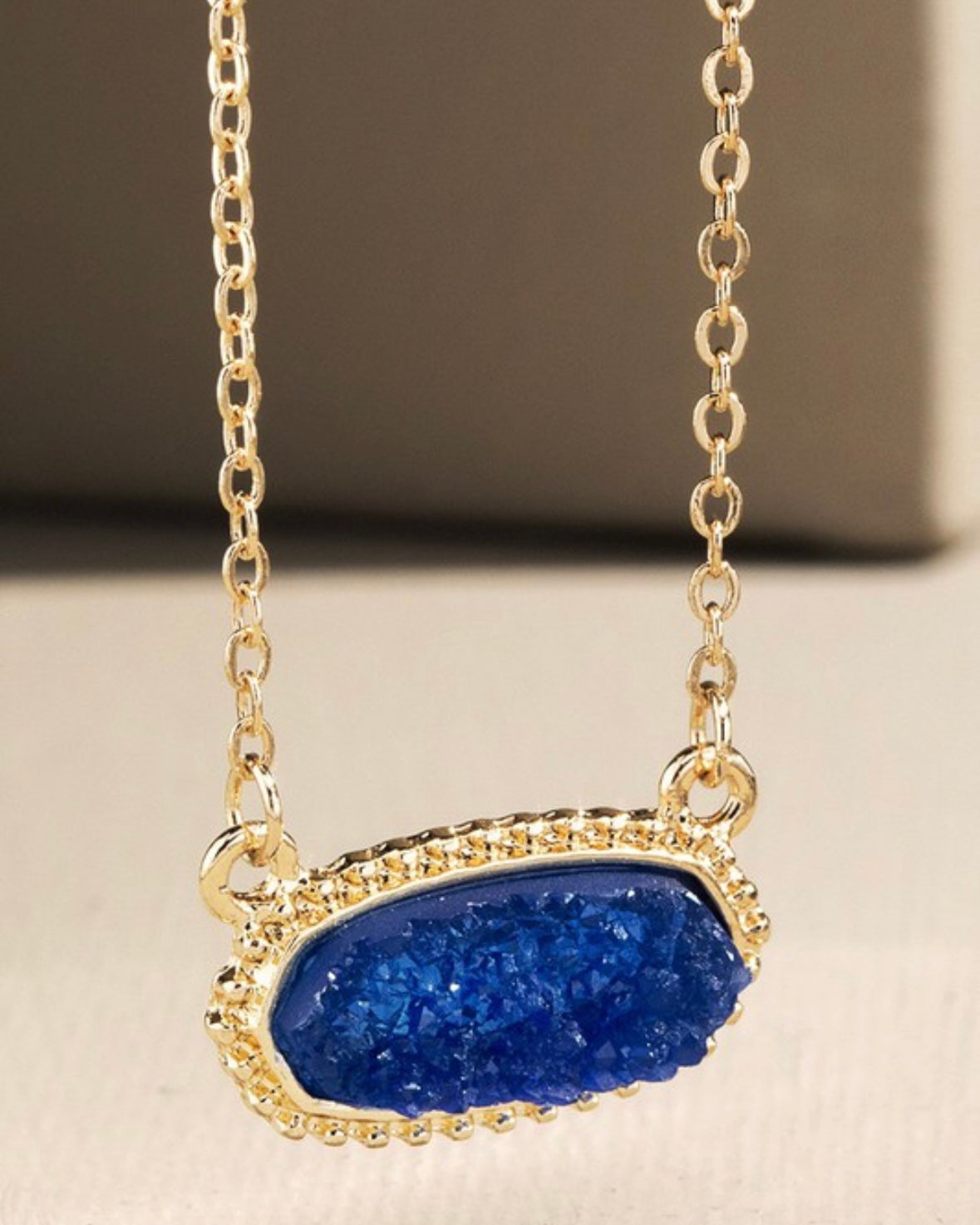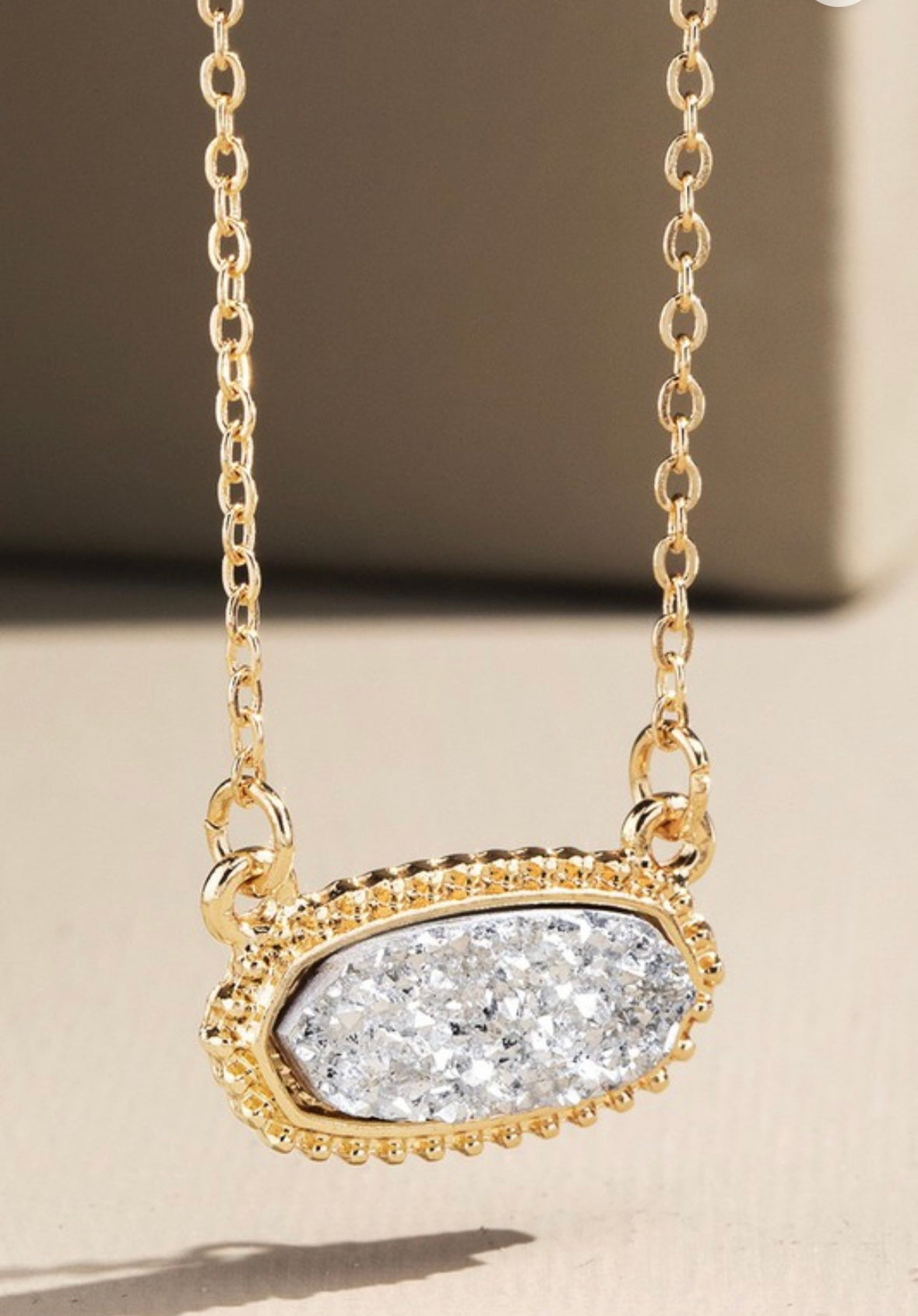 Drusy accented short pendant and metal chain necklace with lobster closure and matching earrings