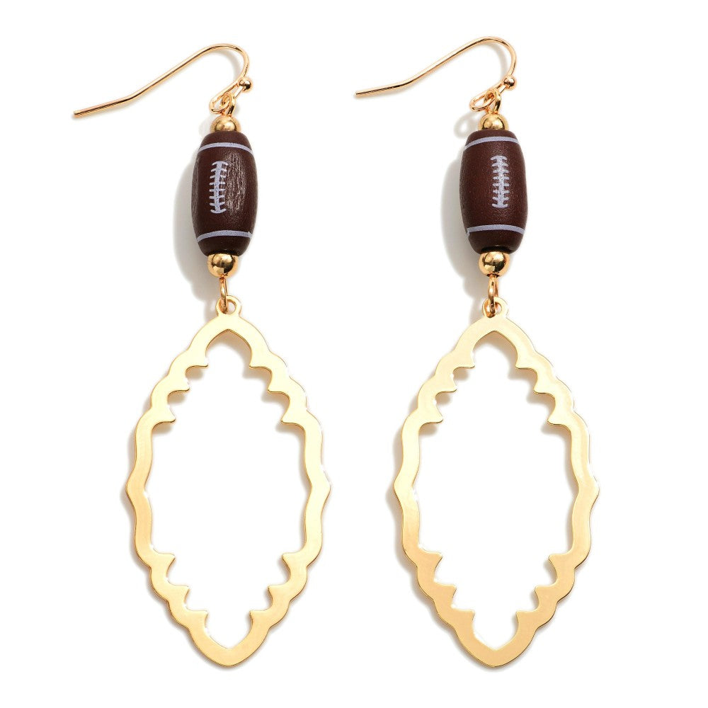 Gold Tone Drop Earrings Featuring Football Wood Bead