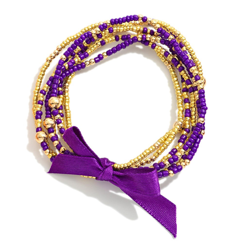 Set of Seven Game Day Beaded Stretch Bracelets Featuring Ribbon Bow Detail