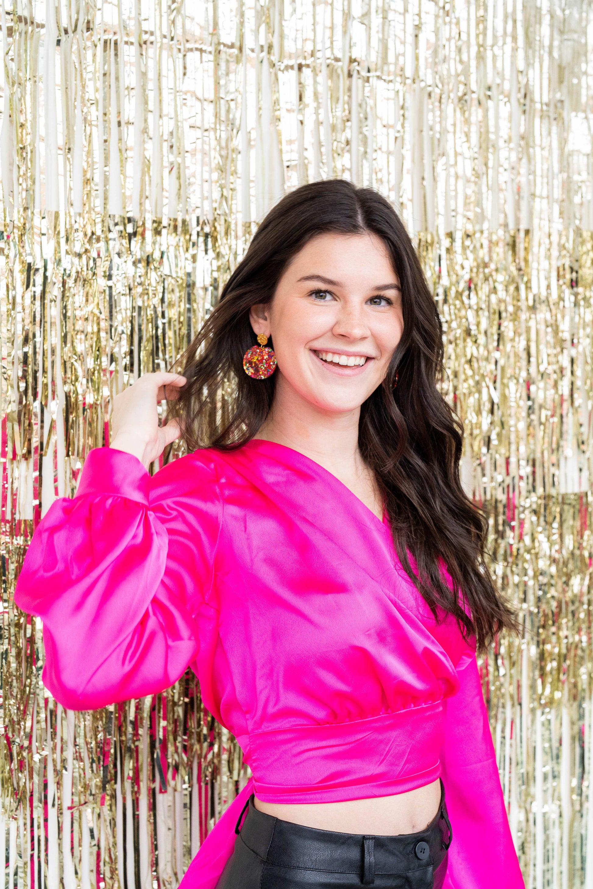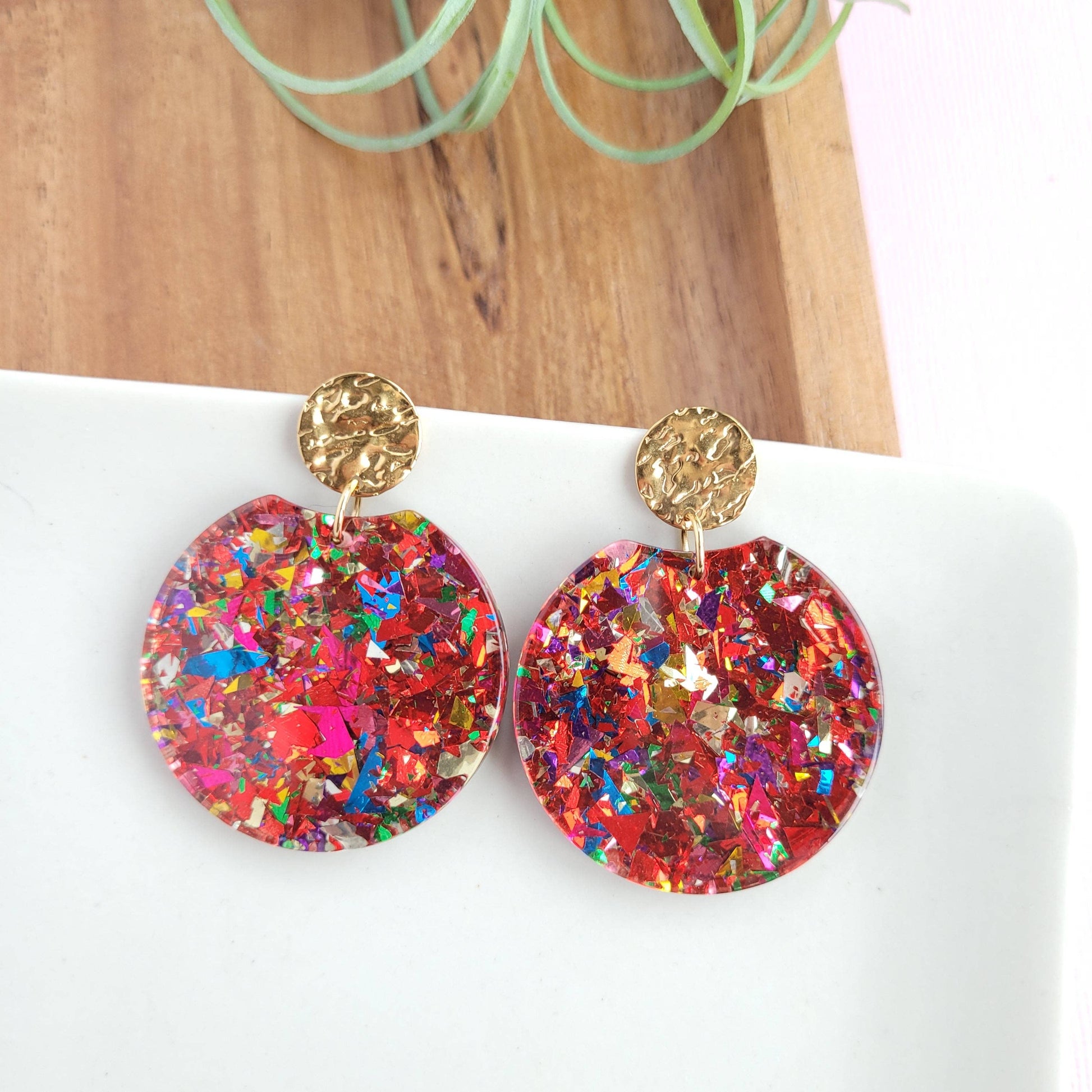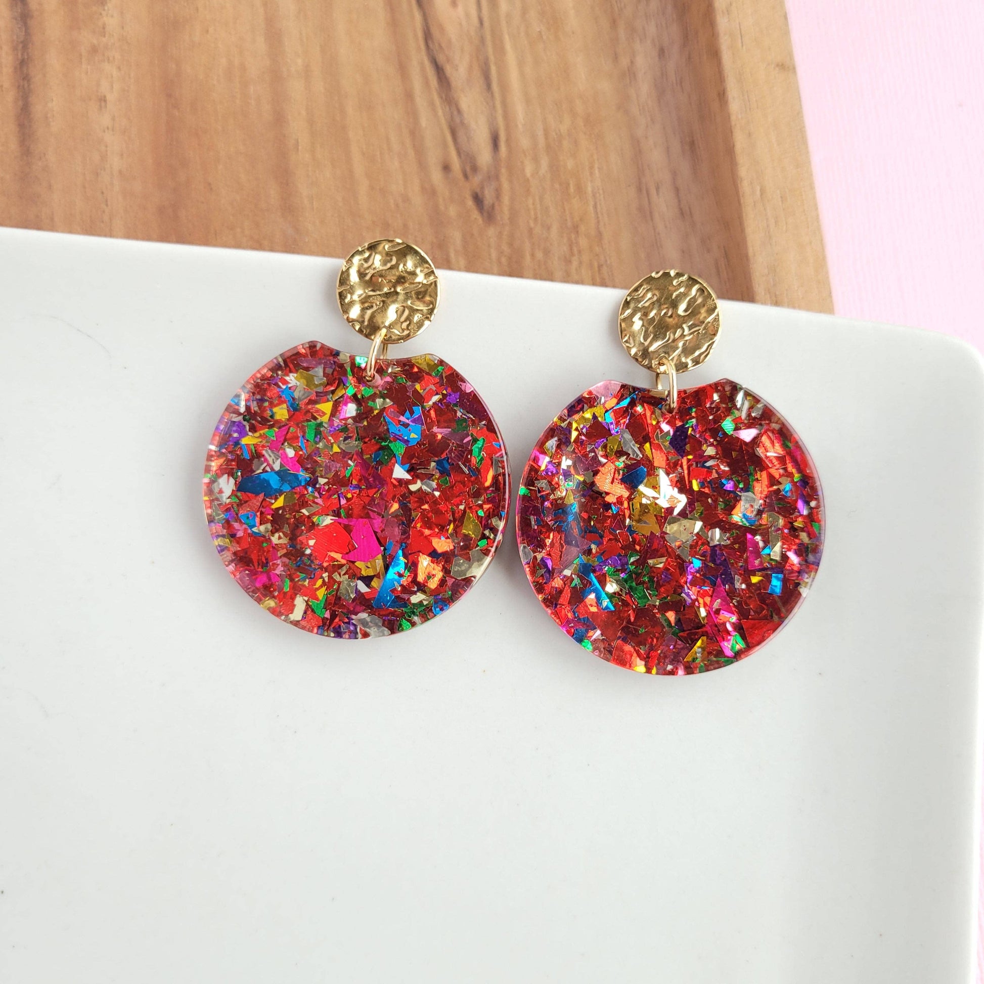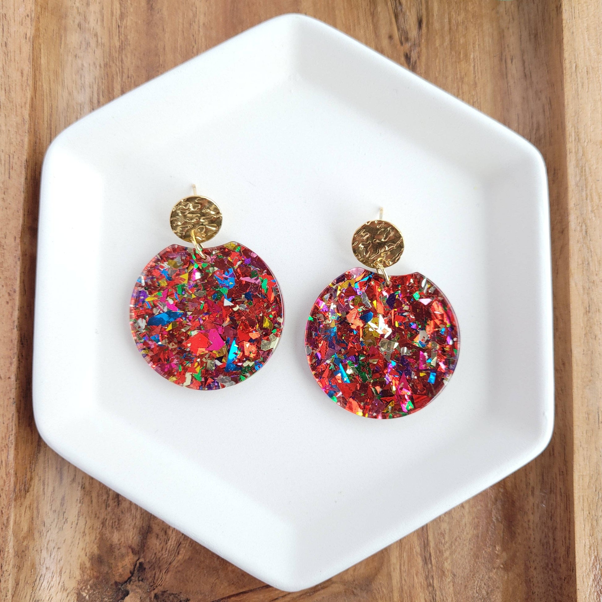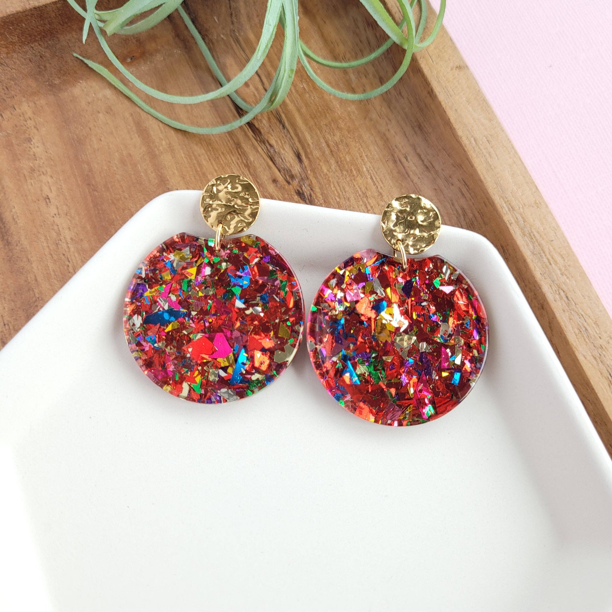 Gianna is a statement drop style with a fun acrylic charm full of sparkle. It is part of our Enchanted Collection full of glitter! * 18K gold-plated hypoallergenic stainless steel posts * 12mm posts * Lightweight and durable acrylic charms with confetti glitter in our enchanted fairy colorway