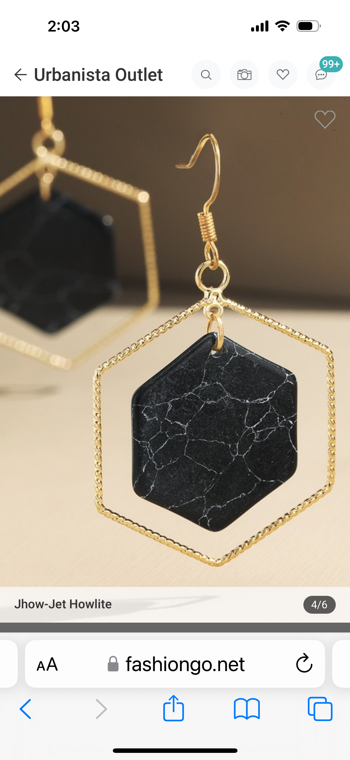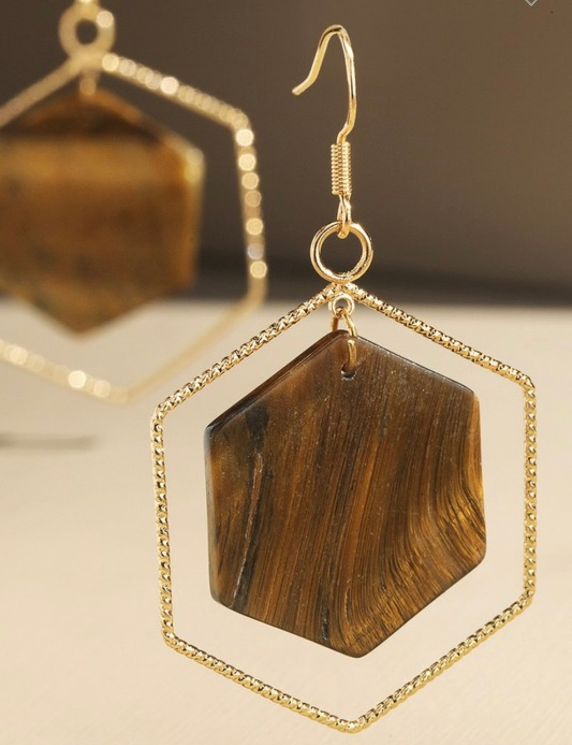 Beautiful natural stone in a hexagon shape twisted wire frame with fish hook earrings
