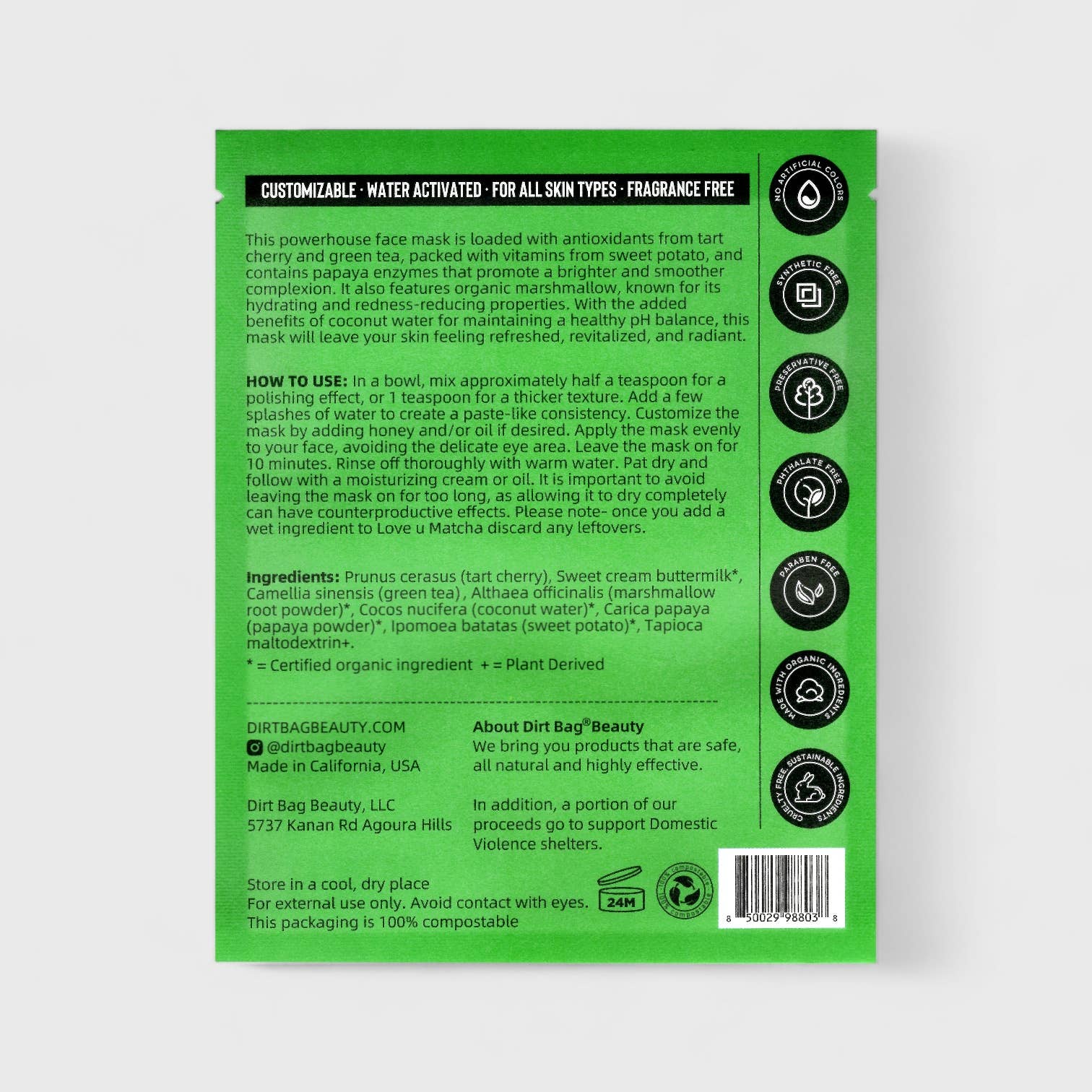 Love u Matcha Instant Glow Face Mask - Up to 5 uses.