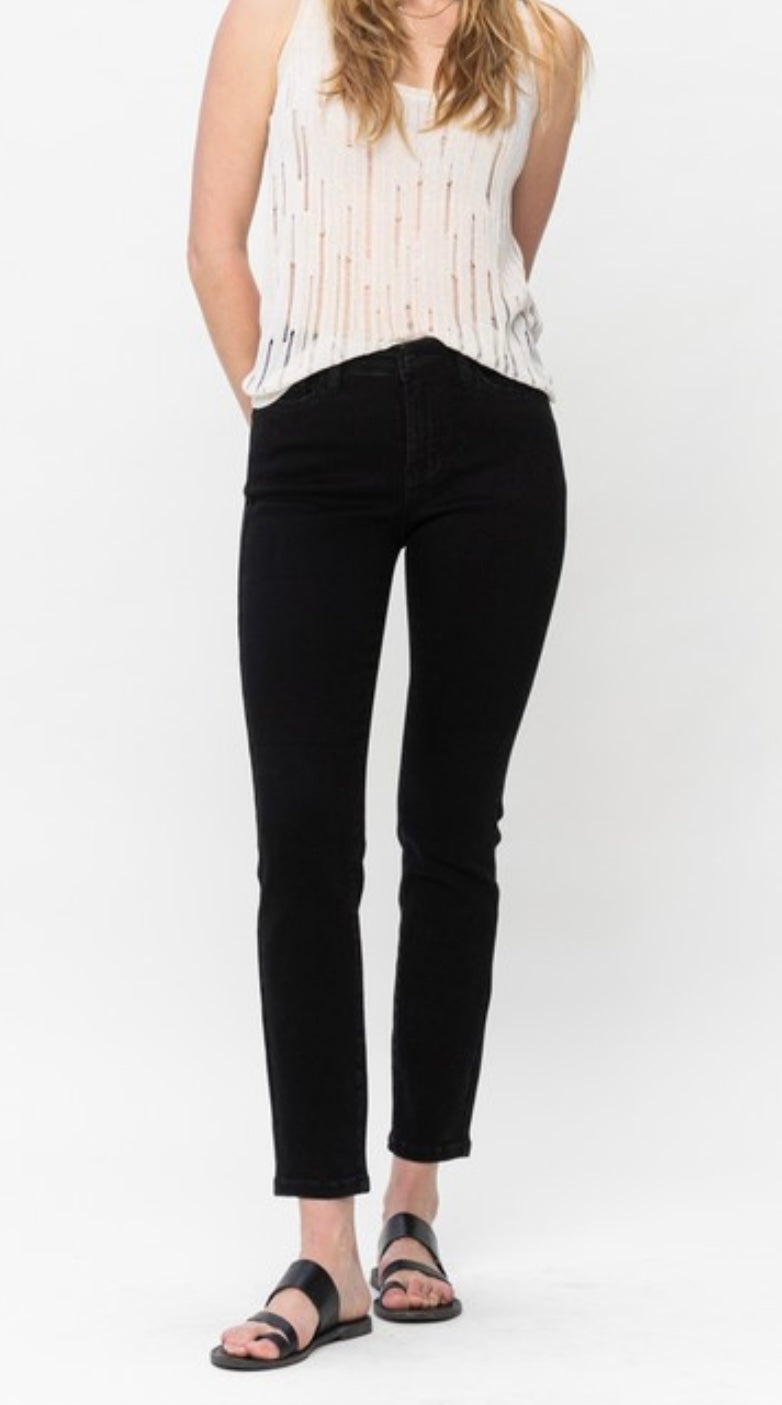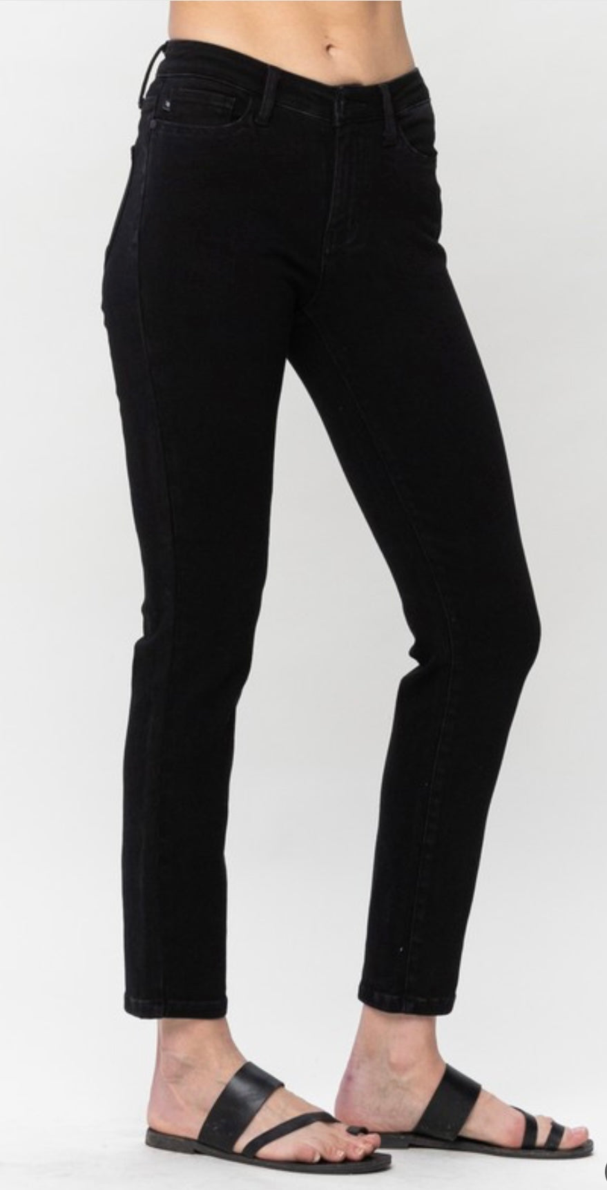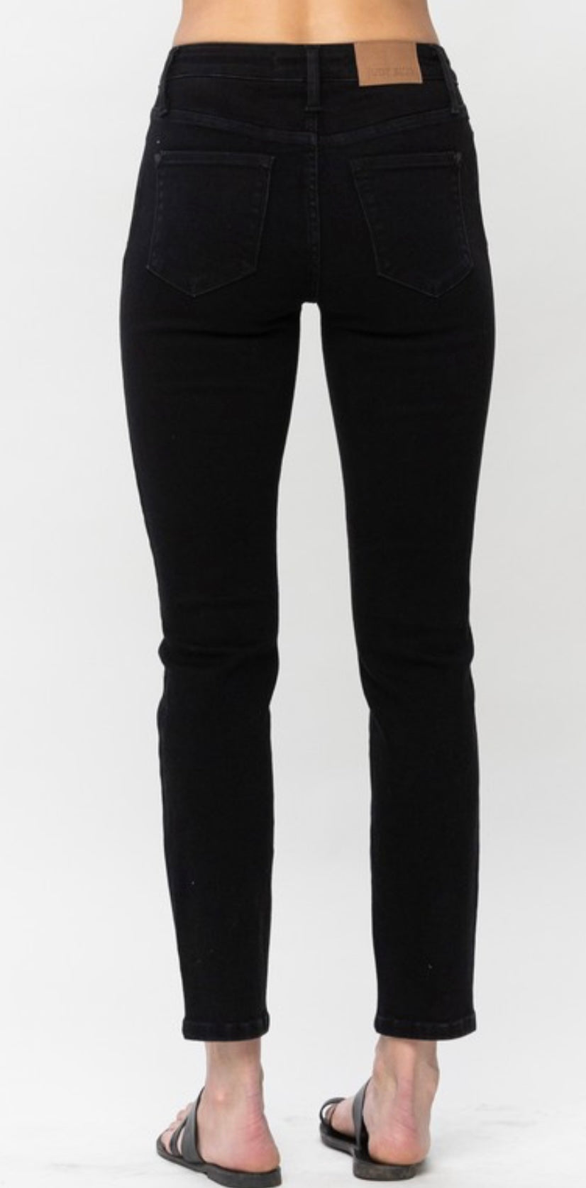 These jeans offer a sleek and contemporary look that is both comfortable and flattering. The mid-rise design of these jeans strikes the ideal balance between a high-rise and low-rise fit, providing a modern silhouette that complements various body types. They sit comfortably at the waist, offering a secure and comfortable fit without sacrificing style. Designed in a classic black color, these jeans exude a timeless appeal that effortlessly transitions from day to night. The rich black hue adds a touch of sophistication and versatility, allowing you to easily pair them with any top or footwear to create a multitude of stylish outfits. The slim fit of these jeans enhances your natural curves while providing a sleek and streamlined appearance. They are tailored to flatter your figure, offering a slimming effect that accentuates your best features. Whether you're dressing up for a night out or going for a casual look, these jeans will become your go-to choice.