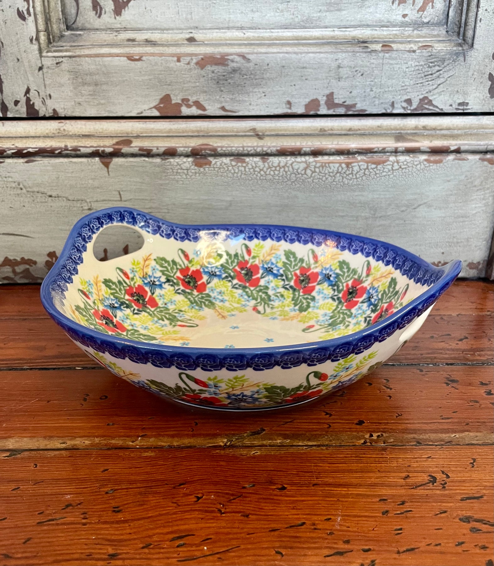 Stunning serving bowl large loop handles. 13” x 3