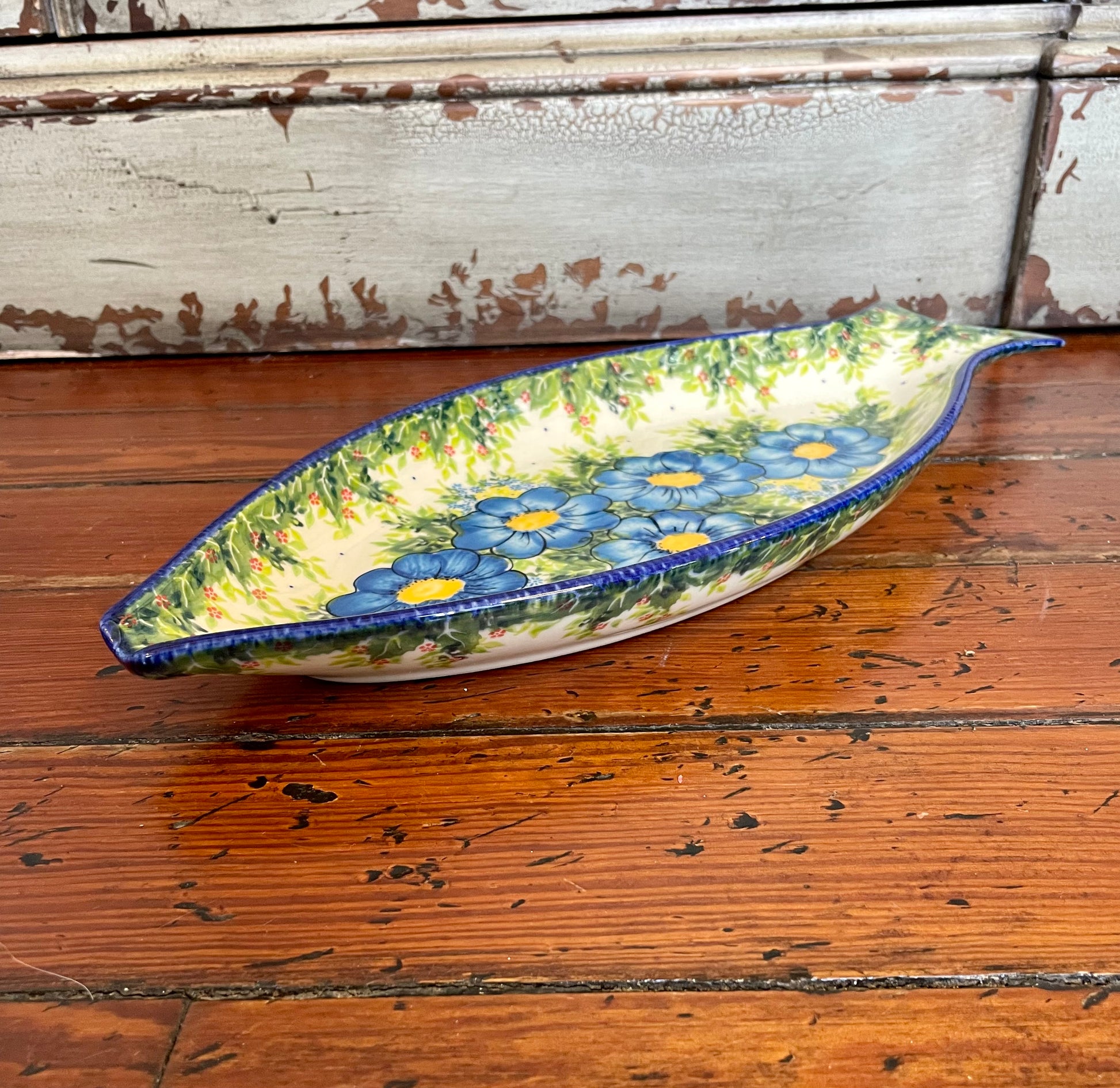 A lovely Unikat serving dish in the shape of a fish. Ideal for the seafood lovers! Measuring 15.5 x 7 x 1.5