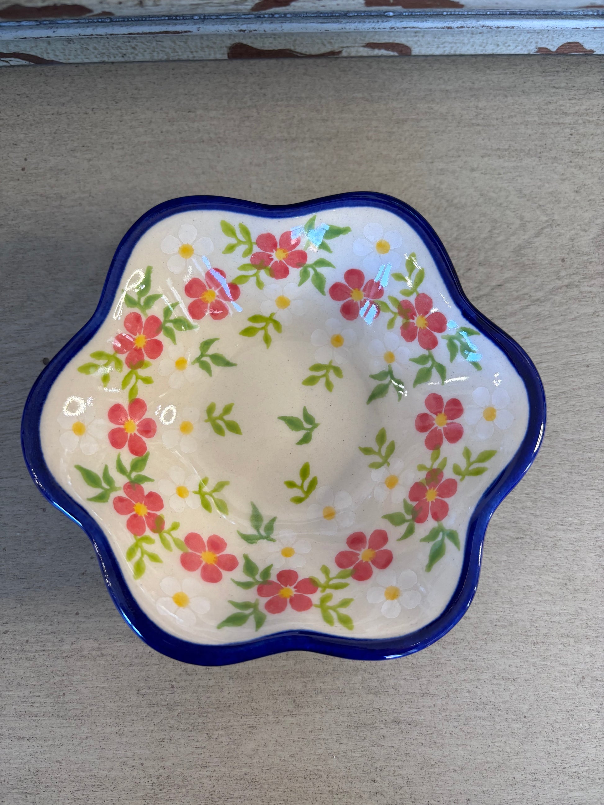 Precious flower shaped bowl in unique Unikat patterns. Perfect for condiments, nuts, olives, etc.