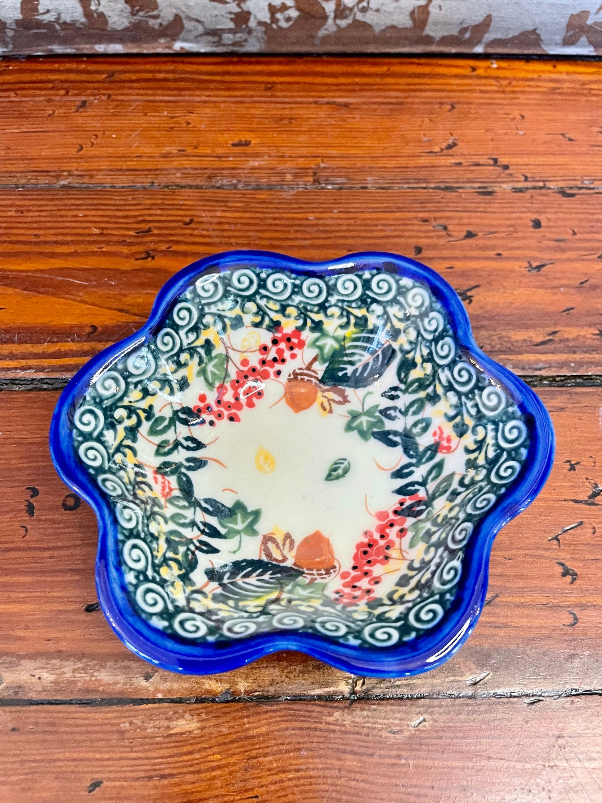Precious flower shaped bowl in unique Unikat patterns. Perfect for condiments, nuts, olives, etc.