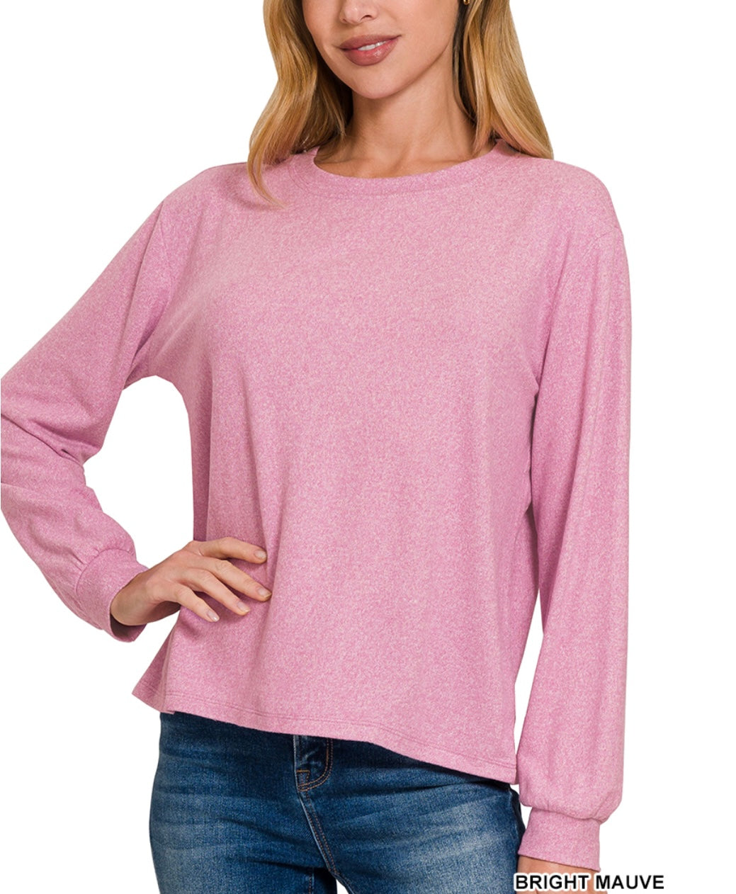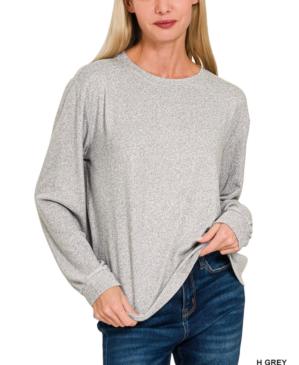 Cozy up in this laid-back long sleeve tee featuring a buttery-soft hacci knit in a flattering melange finish. The relaxed silhouette pairs perfectly with everything in your closet, while the round neckline keeps things effortlessly cool. Available in three gorgeous colorways to match your mood.