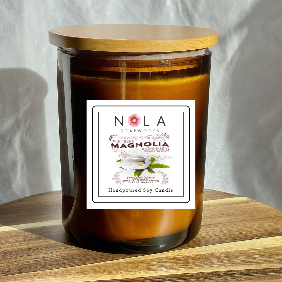 Bring the timeless elegance of the South into your home with our Southern Magnolia Candle. This luxurious candle is infused with the fresh, floral scent of magnolia blossoms in full bloom, capturing the essence of a warm summer day spent beneath the shade of these iconic trees. Top -Green Middle -Jasmine, Magnolia Blossom, Rose Bottom -Musk Essential Oils of COPAIBA OIL , ORANGE OIL FLORIDA