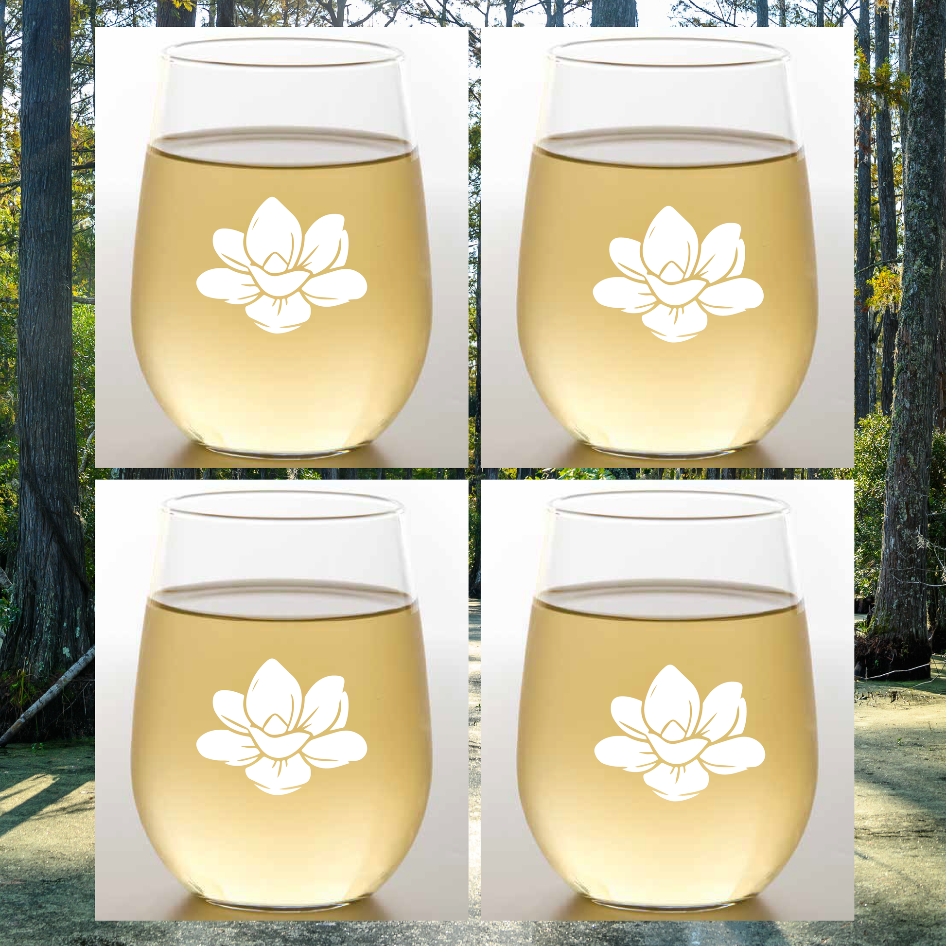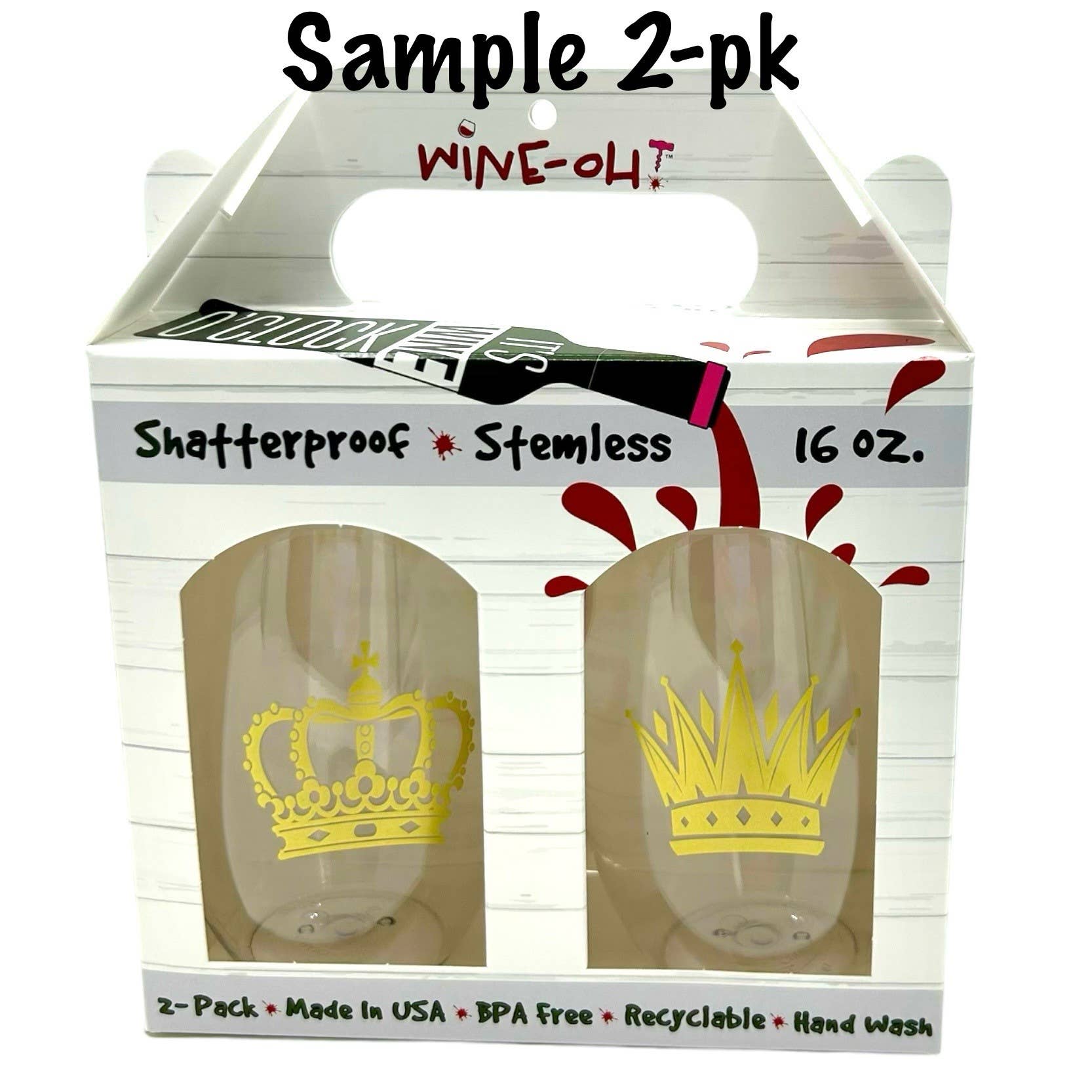 Set of four 16 oz. Unbreakable Stemless Wine Tumblers - Made with the highest quality, crystal clear, BPA-free Tritan Plastic – Lightweight – Recyclable – Reusable – Dishwasher Safe (top rack) – Made in the USA – Commercially Pad-Printed with Ink Designs. The set of 2 is packaged in a decorative window gable box. An assortment of the four designs will be placed in the boxes. Perfect for the beach, boating, poolside, camping, tailgating, the porch, vacations, cruises, holidays, girls trip, parties and more… No worries with glass breakage!