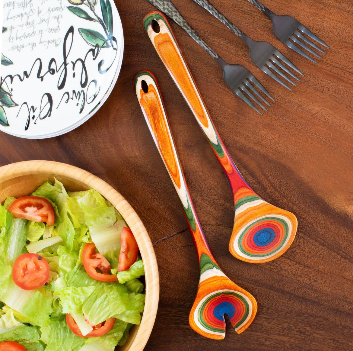 Marrakesh Collection takes inspiration from the sights and sounds of the bustling Moroccan markets. It's a rich, awe-inspiring look never before seen in cooking utensils. This salad serving utensil set is uniquely designed to easily grab salad for tossing and serving.