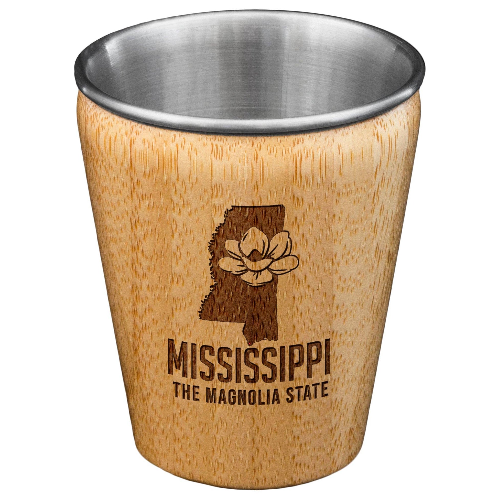 Mississippi Engraved Shot Glass, Bamboo with Stainless Steel