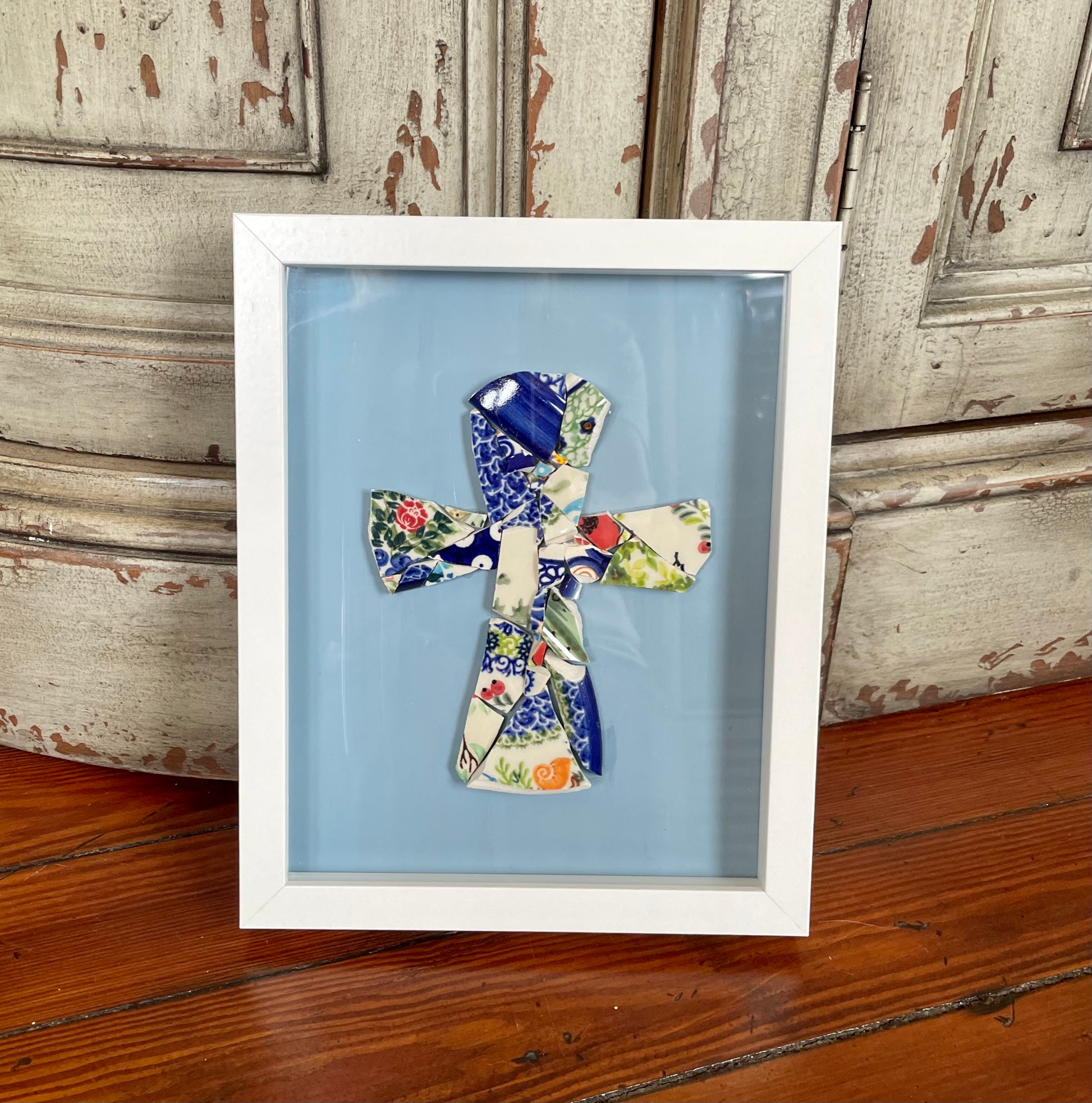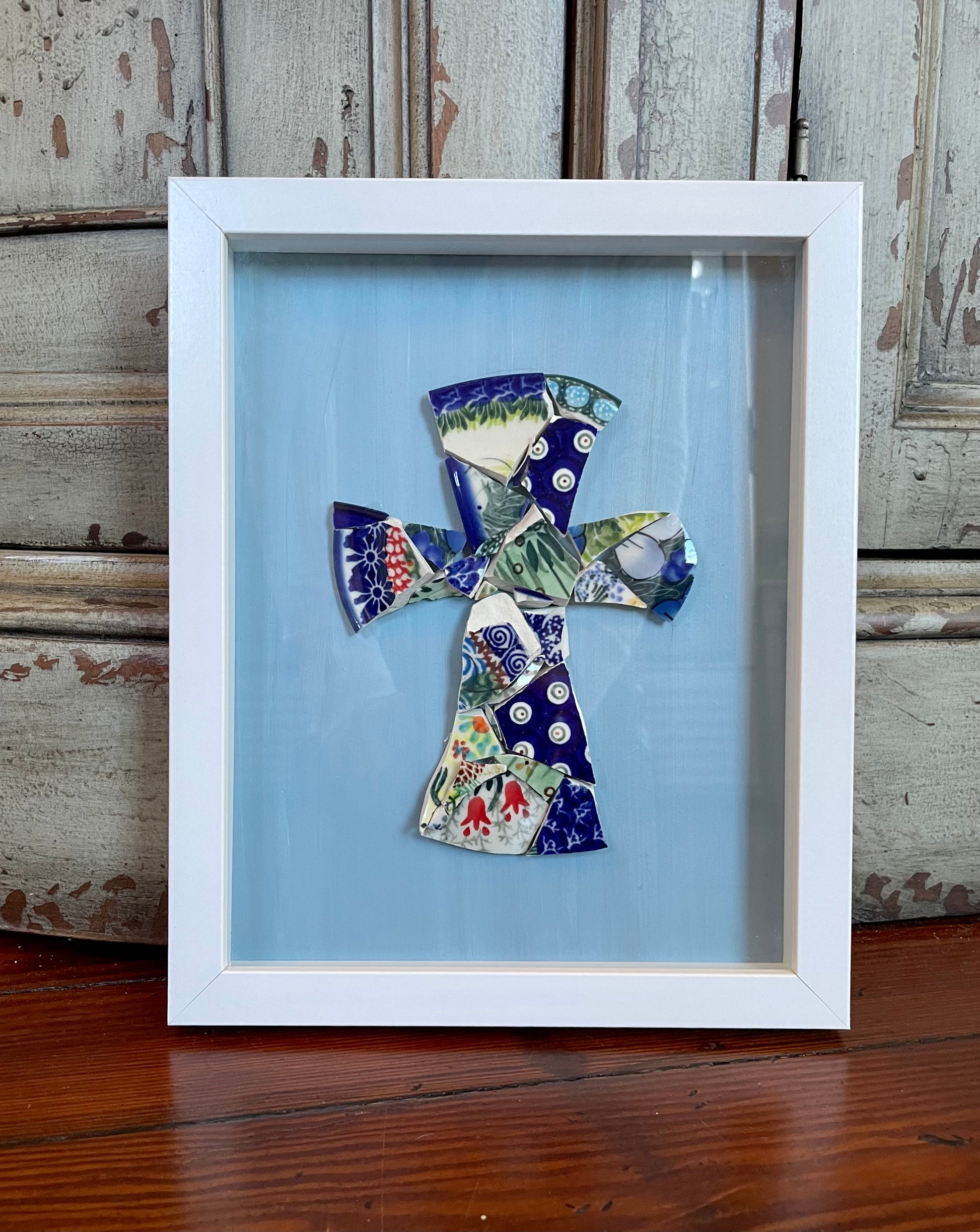Handmade from pieces of Polish Pottery! This 8 x 10 shadow box frame is a beautiful addition to any decor!