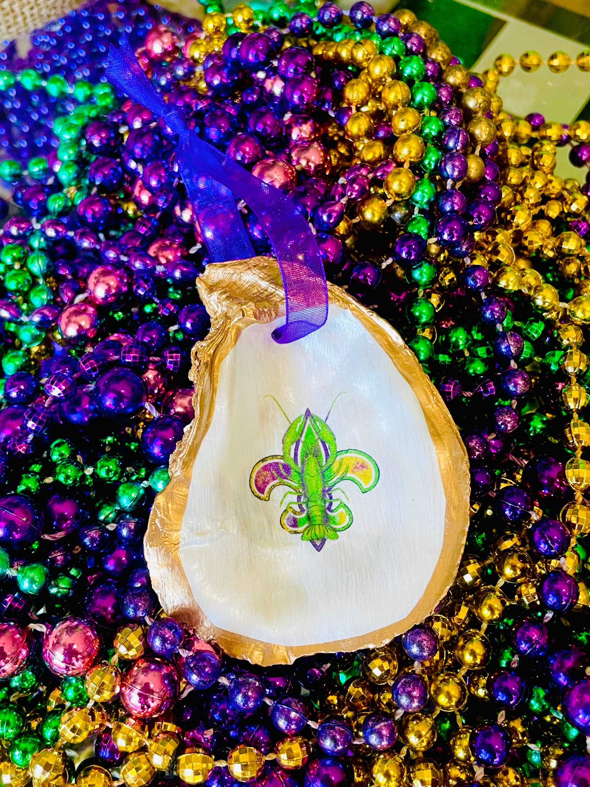 Let the Good Times Roll! Hand-Painted Mardi Gras Oyster Shell Ornament