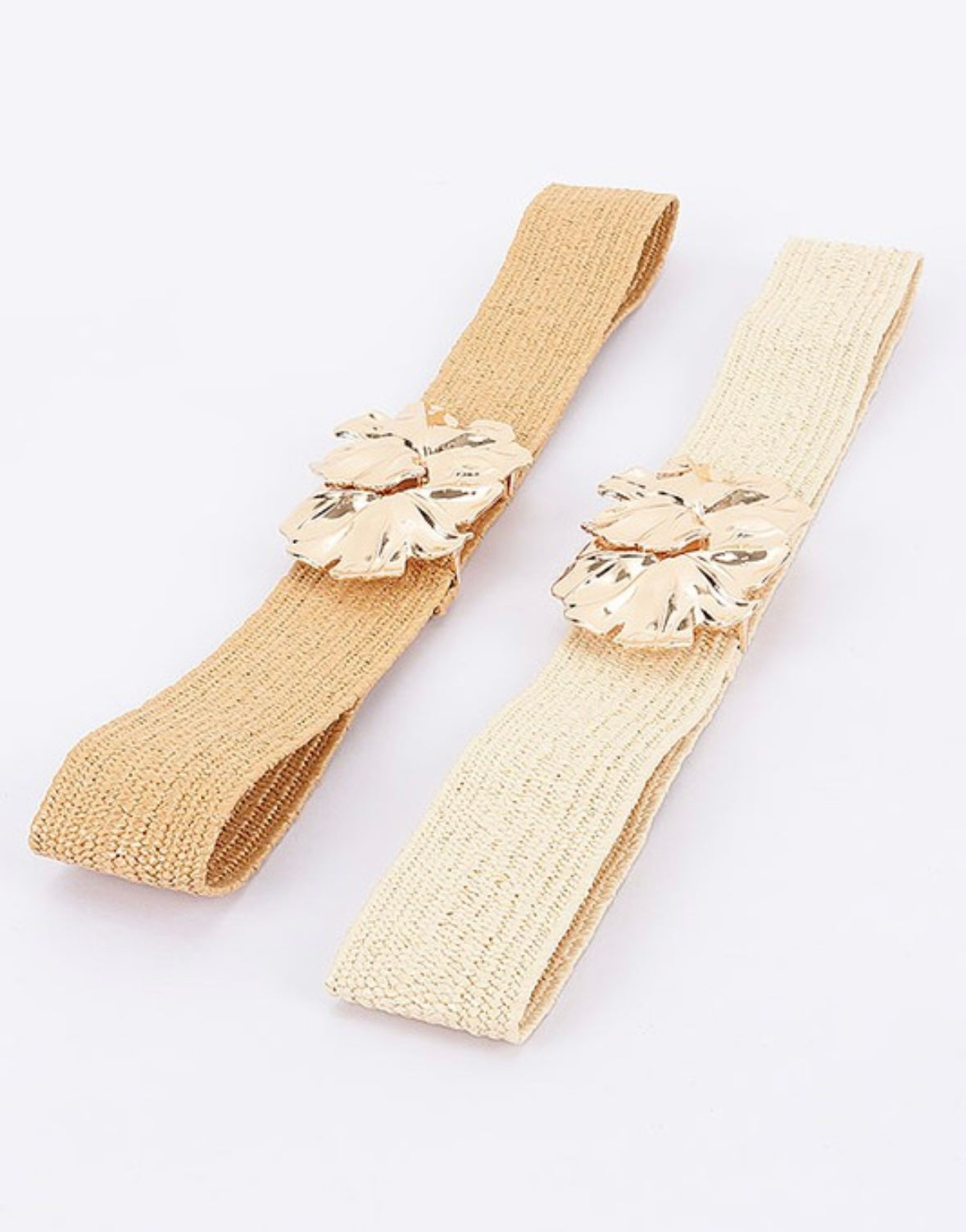 - Faux Straw Large Metal Flower Stretch Plus Size Belt
