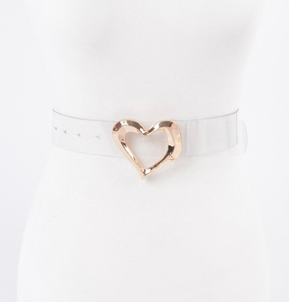 - Introducing the "Heartfelt Elegance Belt" - a stunning waist belt designed for the modern woman. Featuring a luxurious heart buckle, this accessory not only enhances your silhouette but also adds a touch of romance to any outfit. Perfect for plus sizes, the clear belt seamlessly blends with your wardrobe while making a bold statement.