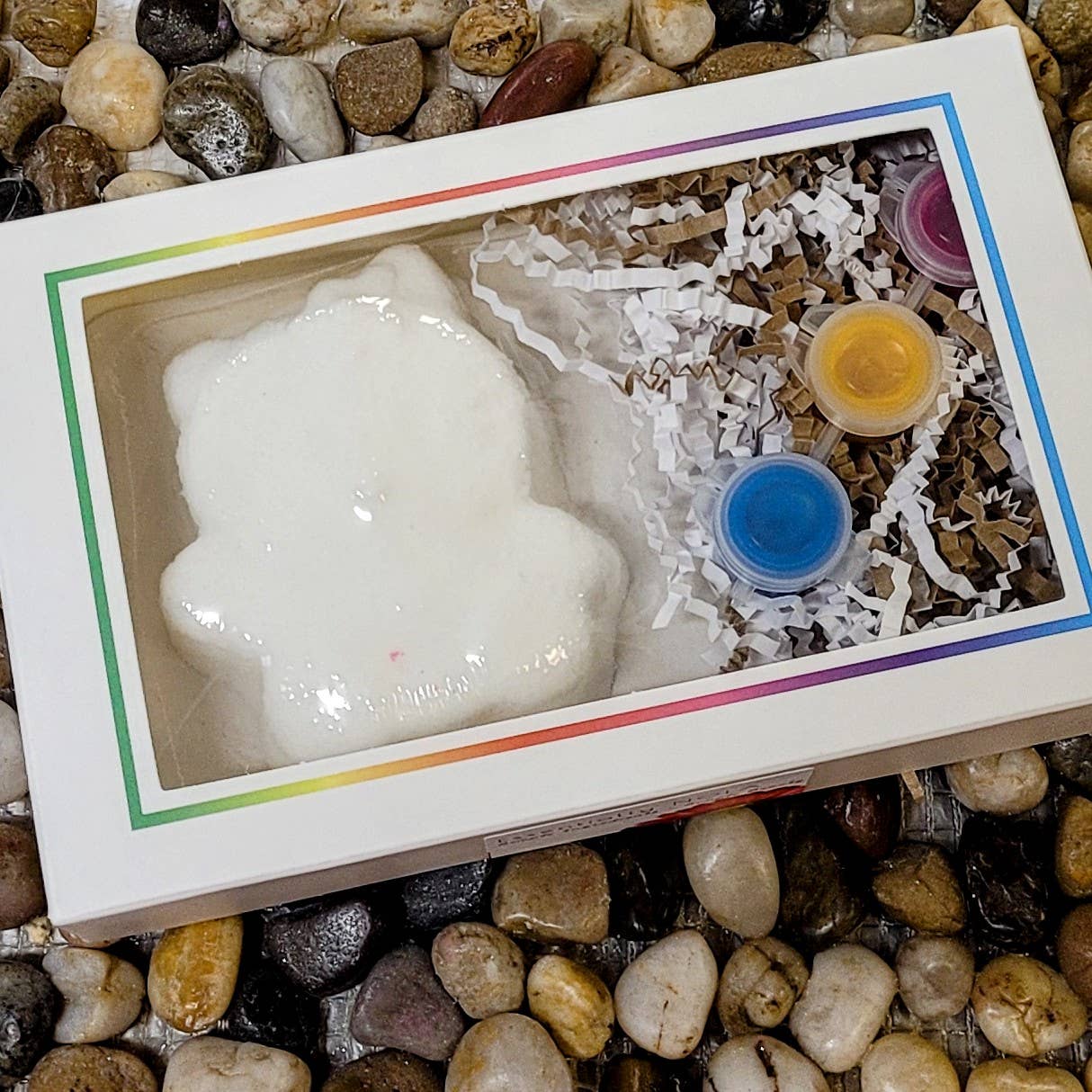 Get creative and bubbly with our fun and festive Paint-Your-Own Bath Bombs! This DIY kit includes one adorable white bath bomb, a variety of colorful paints, and a brush. Simply follow the easy instructions to personalize your bath bomb with your own unique designs. Once painted, drop your bath bomb into your warm bath and watch it fizz and foam, releasing a delightful scent and creating a relaxing soak. Features: One white bath bomb Assortment of colorful paints Paintbrush Easy-to-follow instructions Relaxing and fragrant bath experience