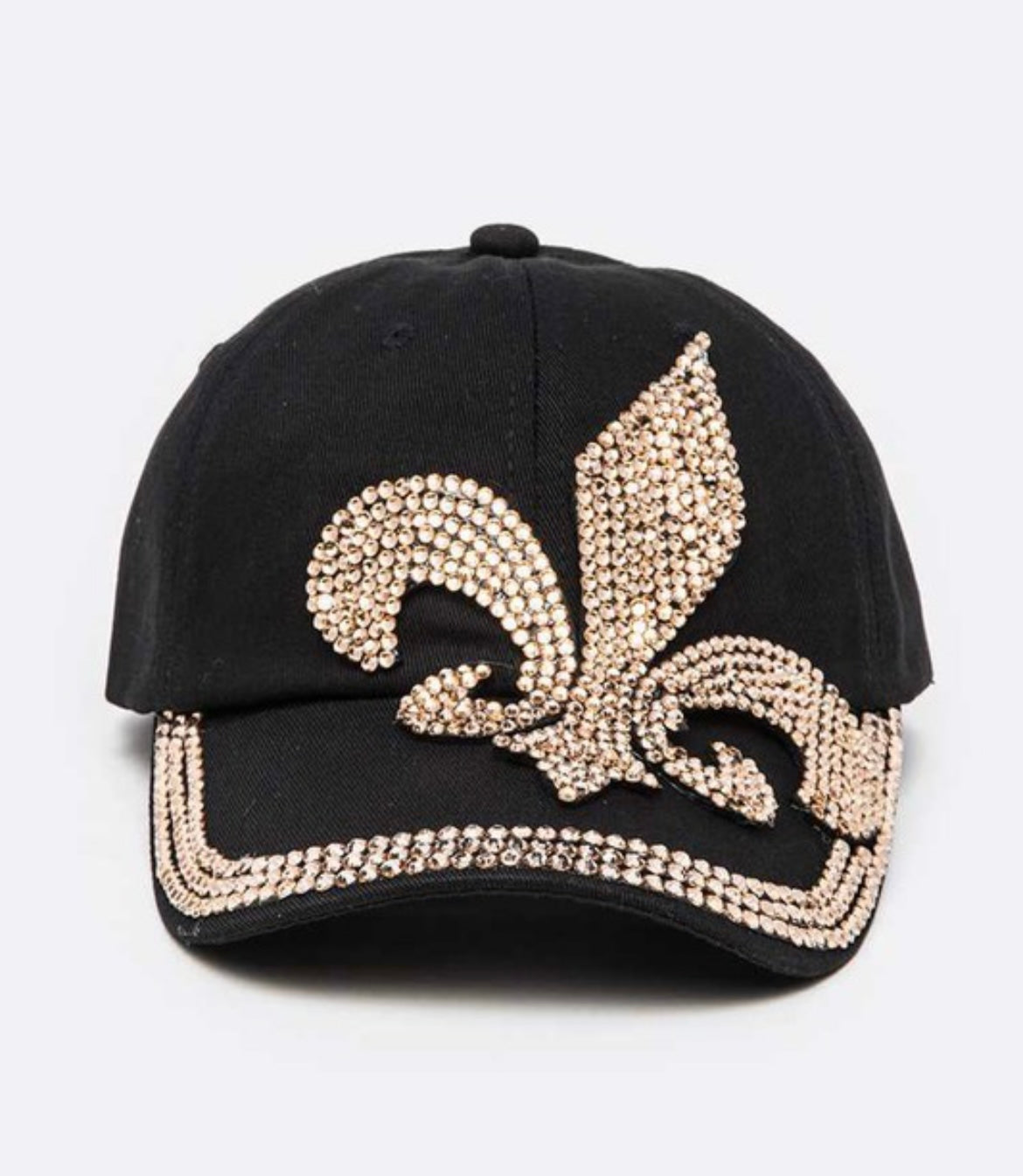 Baseball style hat with rhinestone embellishments. Adjustable back strap.