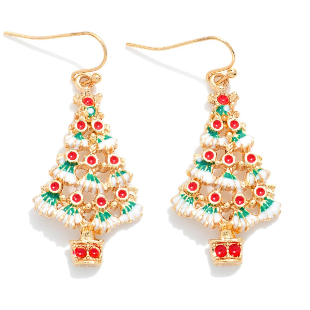 Painted Metal Christmas Tree Drop Earrings