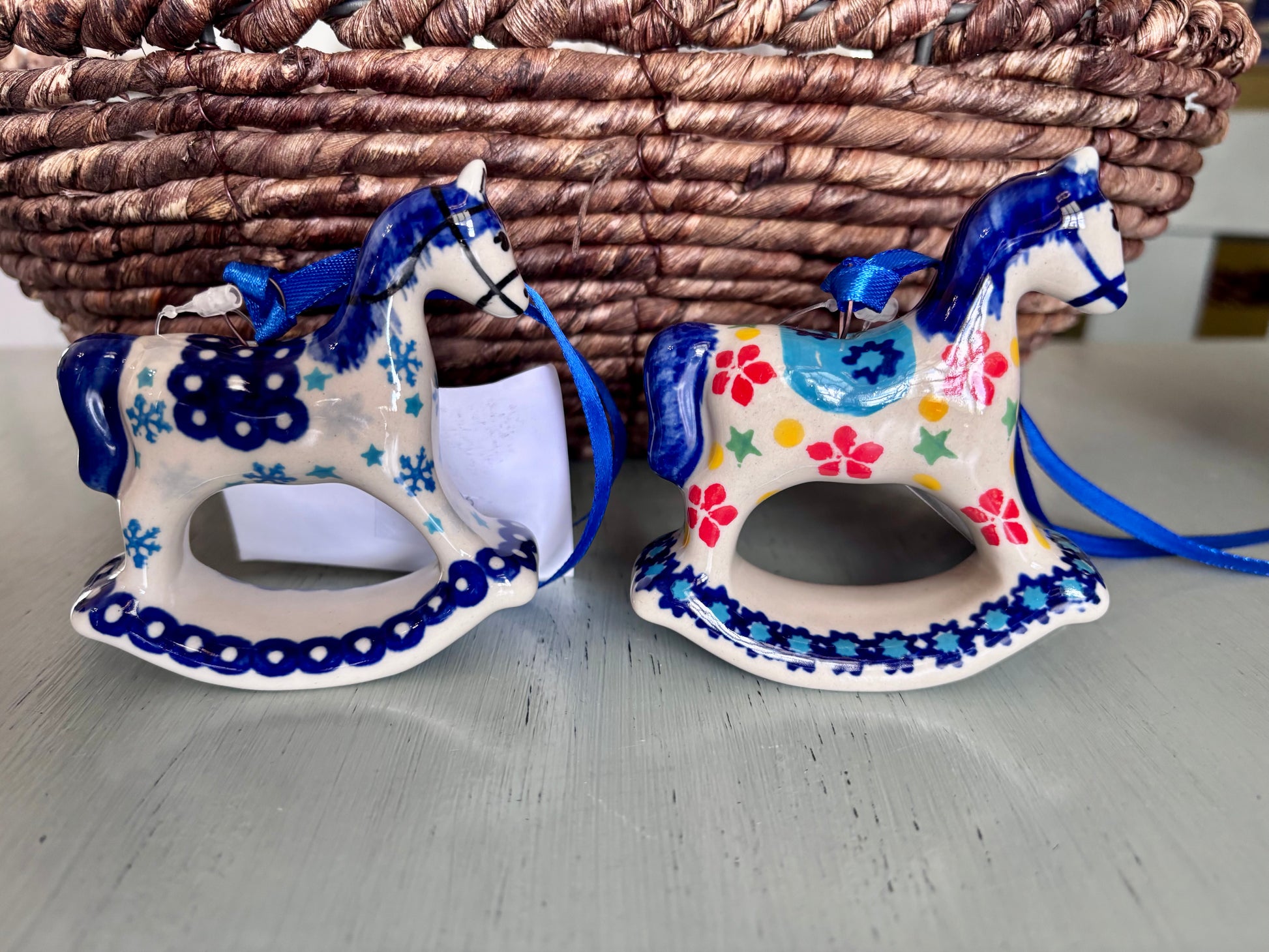 Kalich rocking horse ornaments that measure 3.25 x 3