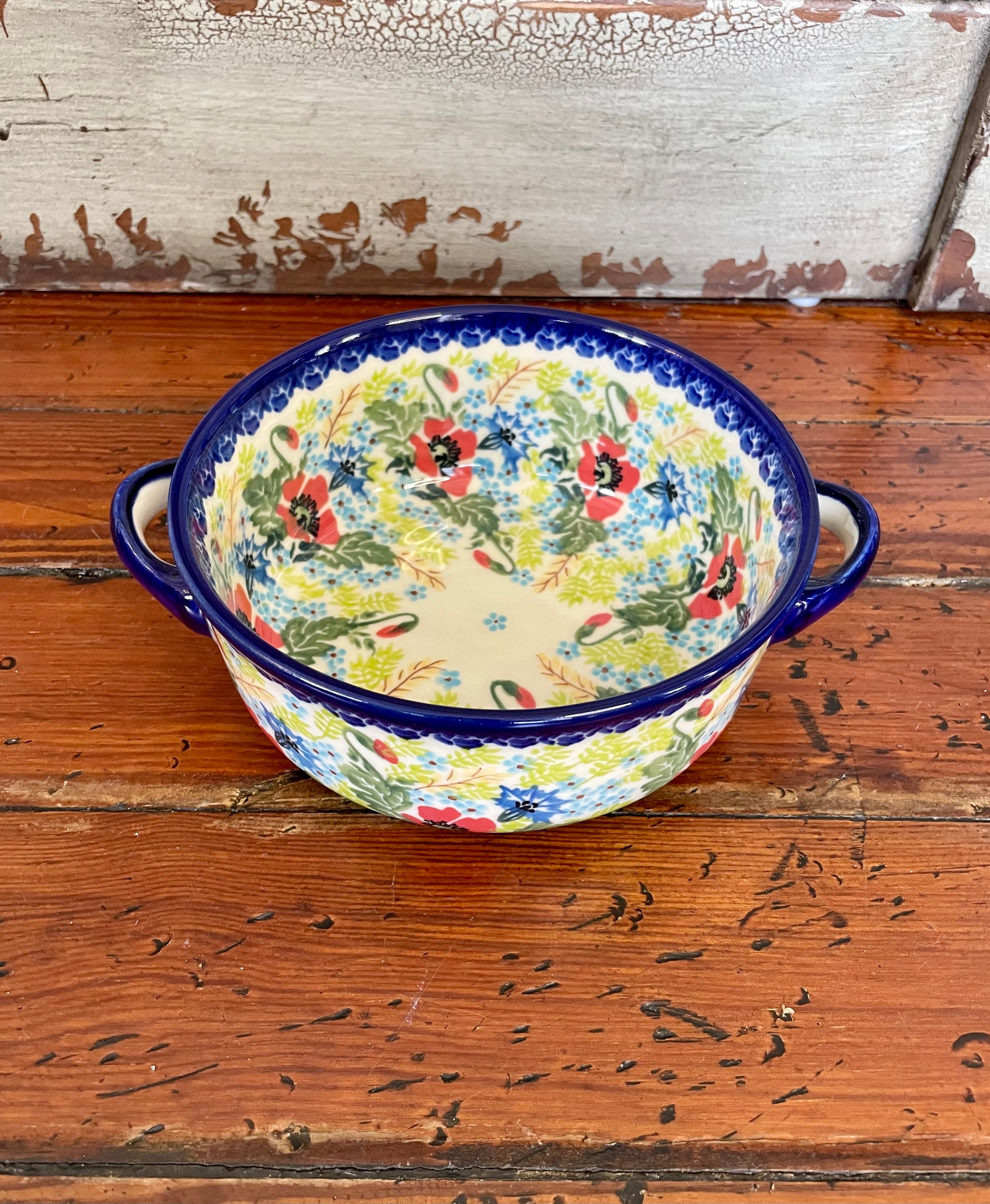 Love the size and depth of this baker! Great for cheese dips and soufflés. Small side handles. 6.5 x 2.75”