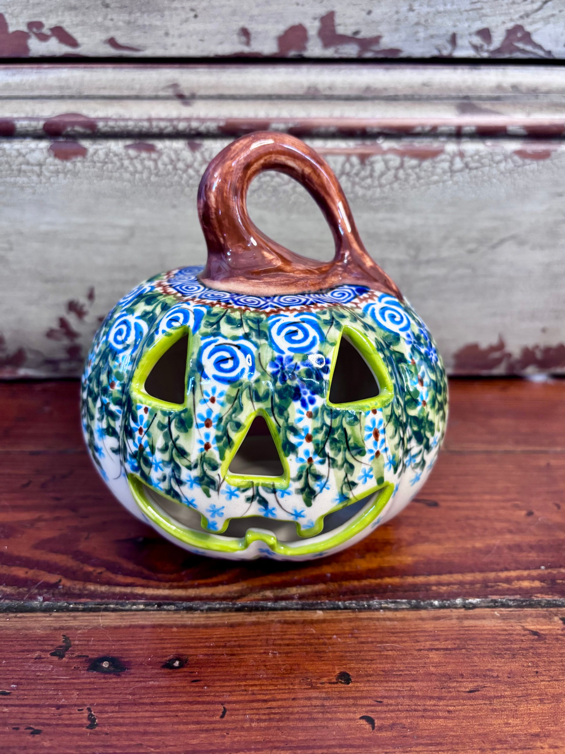 Measuring 5.5” x 4.5”. Cut out face and the back so that a tea light may be placed inside.