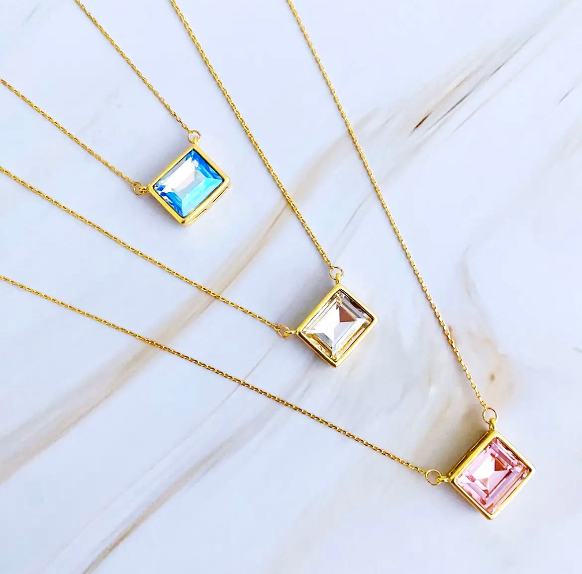 Square Crystal Pendant Necklace
