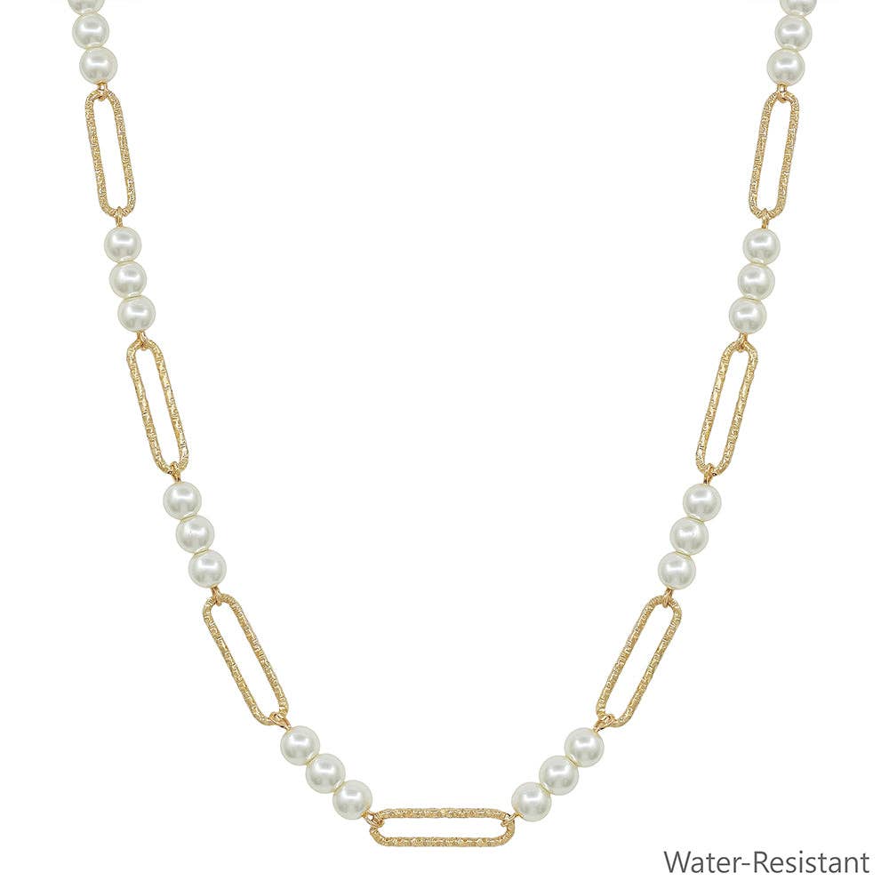 Water Resistant Pearl Beaded and Open Oval Chain 16"-18" Necklace