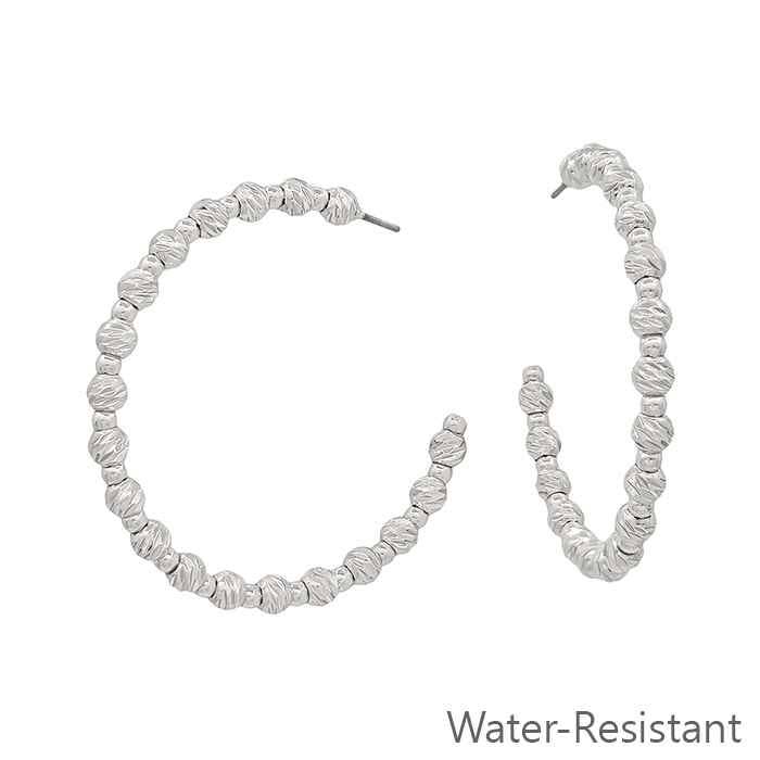 Water Resistant Twisted Silver Bead 2" 4MM Hoop Earring