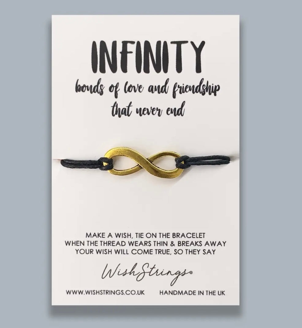 Founded in 2012 WishStrings® present to you a delightful range of WishStrings® Wish Bracelets. Each Tibetan Silver charm is hand strung and knotted on 30cm of the finest waxed cotton cord, making a beautiful simple bracelet to tie on as a token of love and friendship. We are proud that all of our WishStrings® bracelets are lovingly handmade in the UK by our in house team of 'Wish Makers' across our three studios; Barnsley (South Yorkshire), Brampton (Cumbria) and Gretna (Scotland). Each WishString is presented on a luxury 350gsm display card, each thoughtfully designed by our in house team with inspirational sayings, quirky graphics and empowering words.