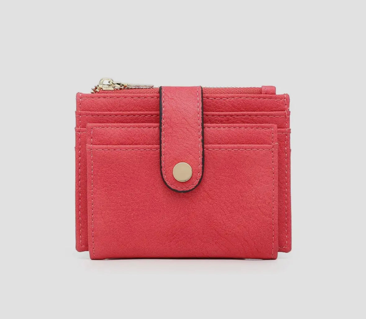 Mini Snap Wallet/Card Holder -Type: Wallet/Card Holder -Closure: Top Zipper Features: -Fold-out card/ID holder -Hardware: Gold-tone -Material: Vegan Leather Dimensions: -Length: 5 inches -Height: 4 inches The Sam Mini Snap Wallet/Card Holder offers compact storage for your essentials. With a top zipper closure and a fold-out card/ID holder, it's both practical and stylish. Crafted from vegan leather with gold-tone hardware, it's a versatile accessory for everyday use.